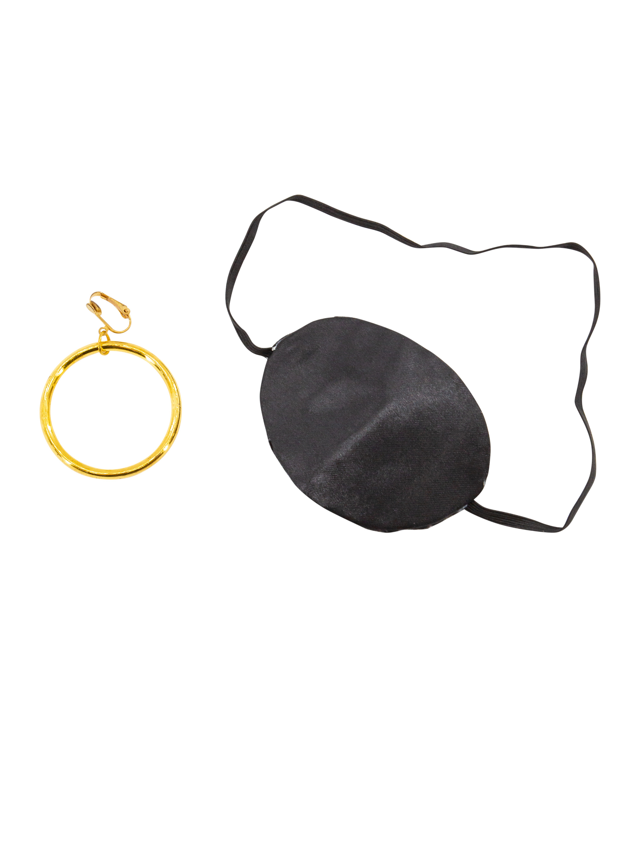 Mit diesem Zubehör wirst Du an Karneval zu einem echten Piraten. Die Augenklappe für den Pirat mit Ohrring ist aus schwarzem Satin und wird mit einem Gummiband befestigt. So bist Du für Deine Abenteuer bestens ausgestattet. Der große, goldene Ohrring der Piraten Augenklappe rundet Dein Kostüm perfekt ab. Er wird ganz einfach mit einem Klipp befestigt. Das Zubehör macht Dein Kostüm erst realistisch. Augenklappe und Ohrring lassen Dich in das Leben eines richtigen Piraten eintauchen. Damit machst Du aus einem klassischen Kostüm etwas Besonderes. Für jeden Piraten ein Muss.