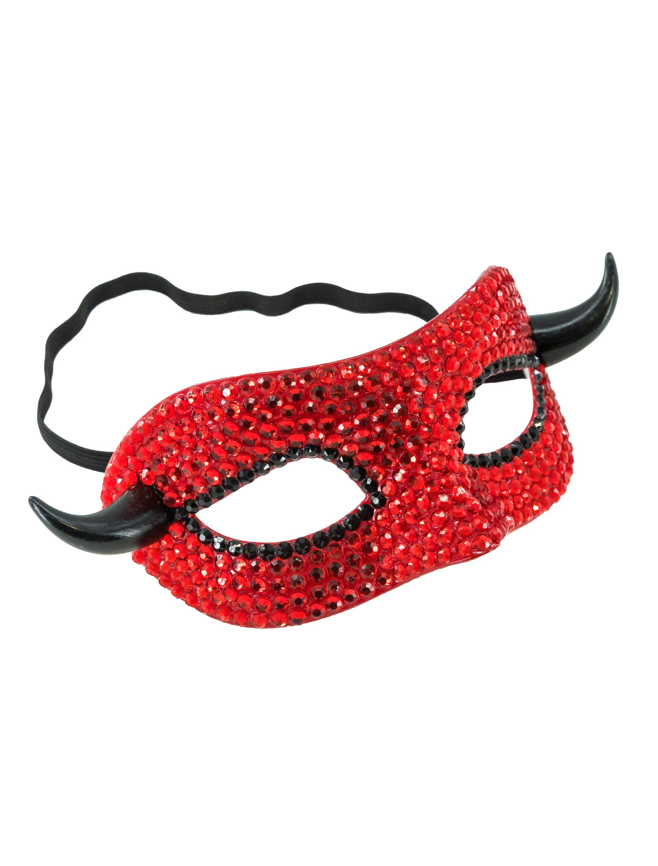 Augenmaske Teufel mit Strasssteinen und Hörnern rot