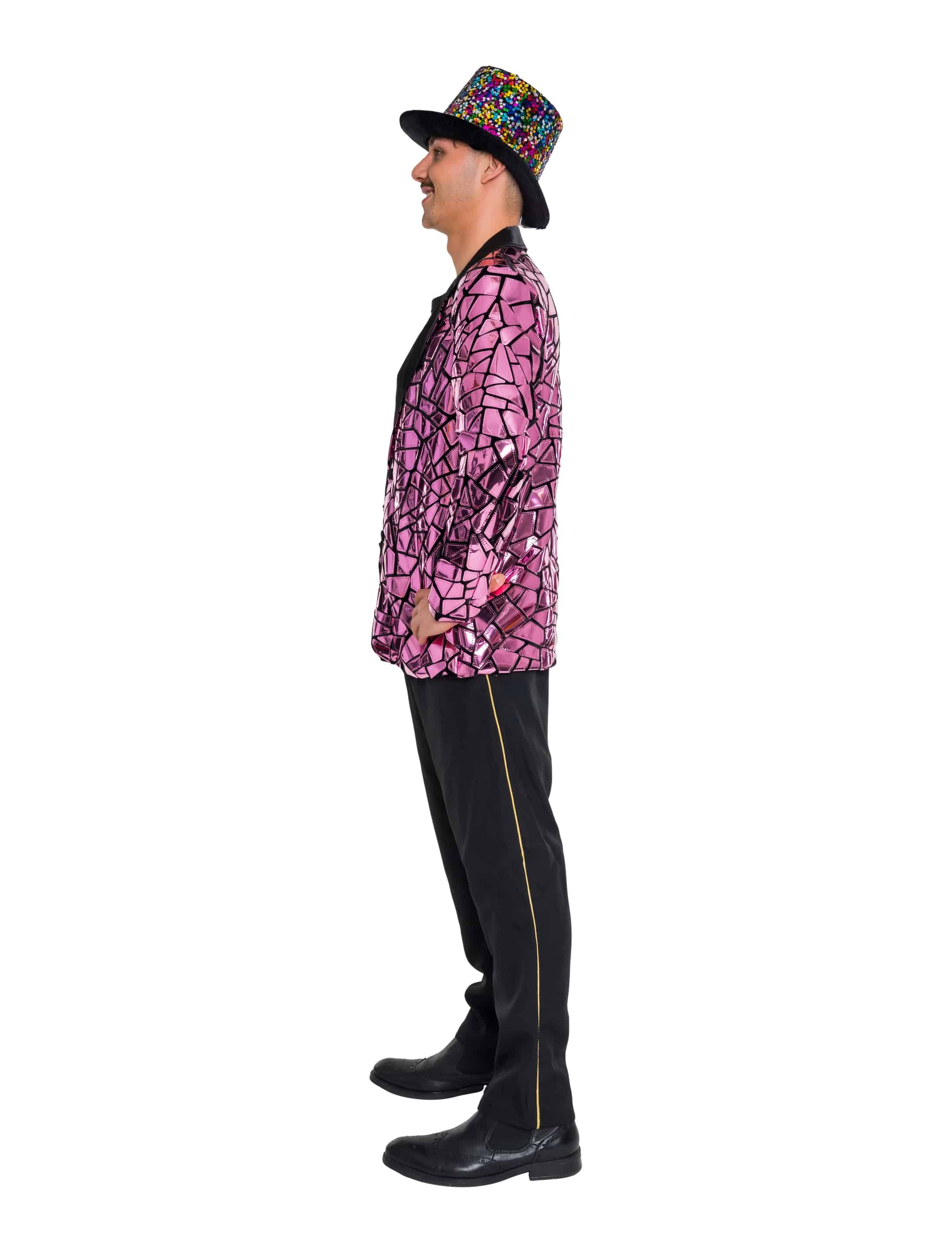 Glänzend, extravagant und absolut bühnenreif! Unser Blazer ist in mehreren Farben erhältlich und lässt sich vorne mit zwei Knöpfen schließen. Die Passform ist klassisch gehalten, das Design aber alles andere als zurückhaltend: Von oben bis unten ist der Blazer mit einer metallisch schimmernden Spiegelmosaik-Optik überzogen, die bei jeder Bewegung spektakulär das Licht reflektiert. Ob für Showauftritte, Karneval oder Festivals – mit diesem Blazer bist du perfekt ausgestattet. Ein echtes Highlight für alle, die sich gerne auffällig und stilvoll in Szene setzen!