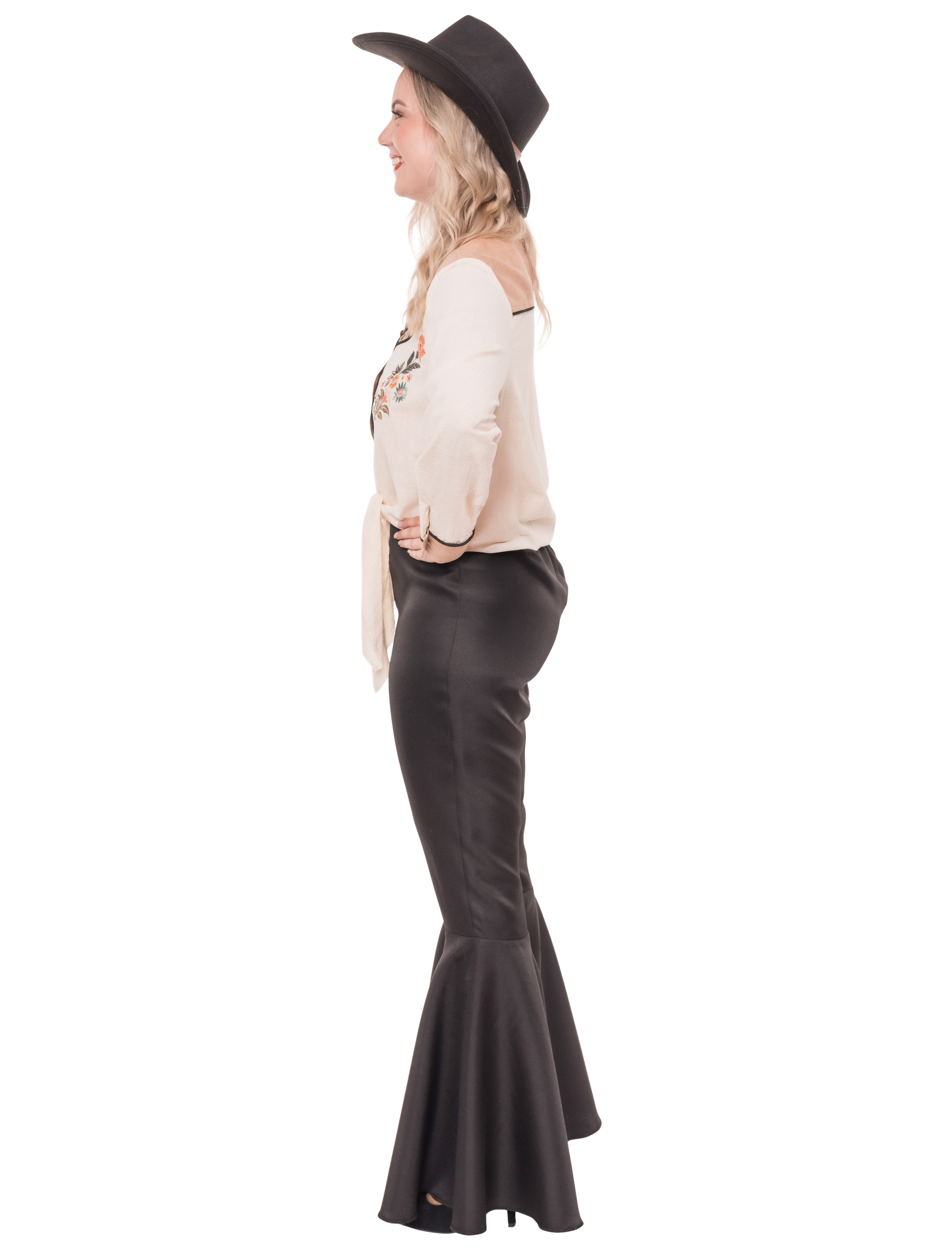Zeit, dein inneres Cowgirl rauszulassen und zwar mit unserer schicken Bluse mit floralem Feinschliff! Die aufwendig gestickten Blumen auf der Vorderseite bringen nicht nur Wildwest-Flair, sondern auch einen Hauch von Blütenzauber in dein Outfit. Perfekt also für Line Dance, Lagerfeuer oder Lasso-Action. Und weil du natürlich die Zügel selbst in der Hand hast, lässt sich die Bluse vorne ganz easy zusammenknoten – locker, lässig, super stylisch. Ob du nun auf der Kostümparty das Lasso kreisen lässt oder dich als Western-Ikone beim Karneval zeigst, mit dieser Bluse bist du definitiv auf der modischen Überholspur unterwegs!