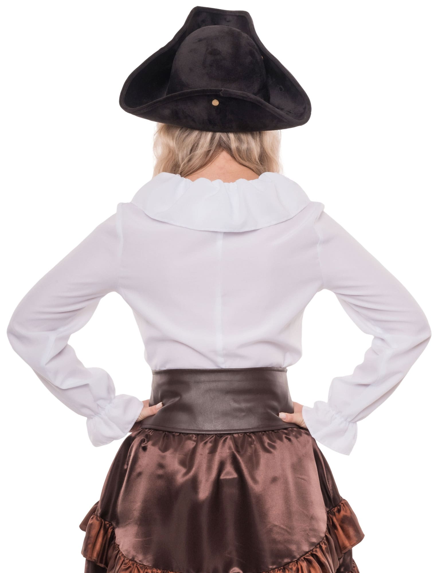 Mit unserer Piratin Bluse für Damen holst du dir den Klassiker unter den Piratenkostümen in den Kleiderschrank – stilvoll, vielseitig und bereit für jedes Abenteuer! Diese Bluse verbindet authentisches Design mit hohem Tragekomfort. Der einfarbige Stoff sorgt für eine klare, klassische Optik. Der auffällige Kragen und die Schnürung am Dekolleté unterstreichen den typischen Piratenstil. Ob an Karneval, auf Motto-Partys oder beim nächsten Piratenfest – mit dieser Bluse bist du bestens ausgestattet. Ein Muss für alle, die sich stilecht in Szene setzen und auf Schatzsuche gehen wollen!