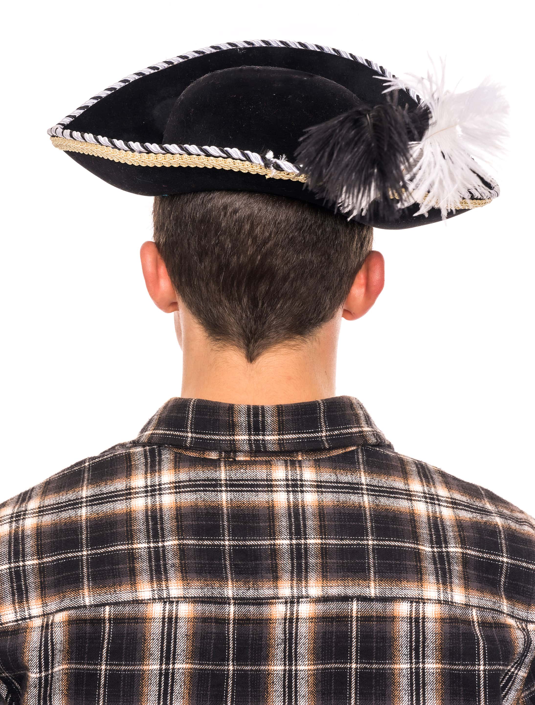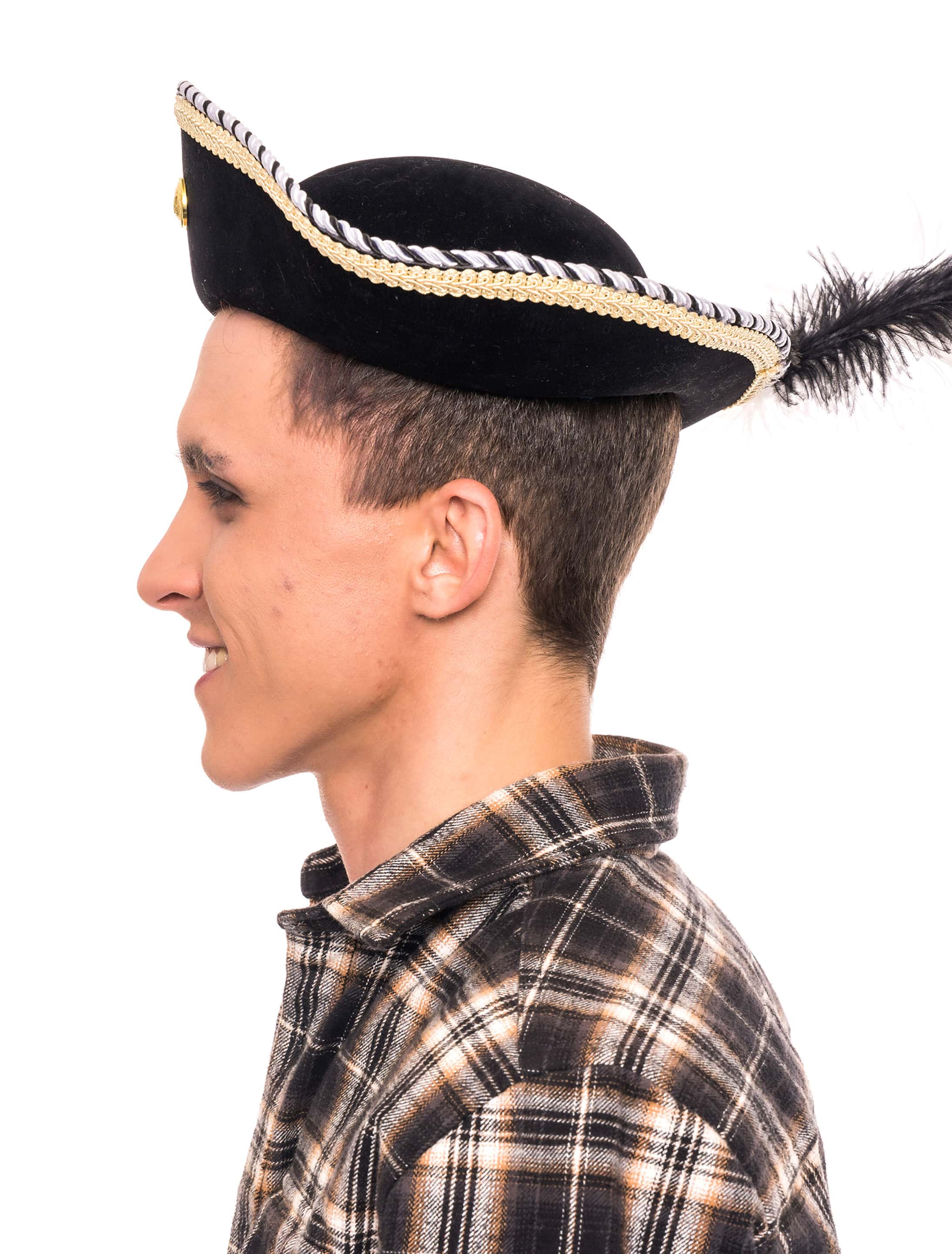 Dreispitz Pirat mit Großer Feder schwarz 57