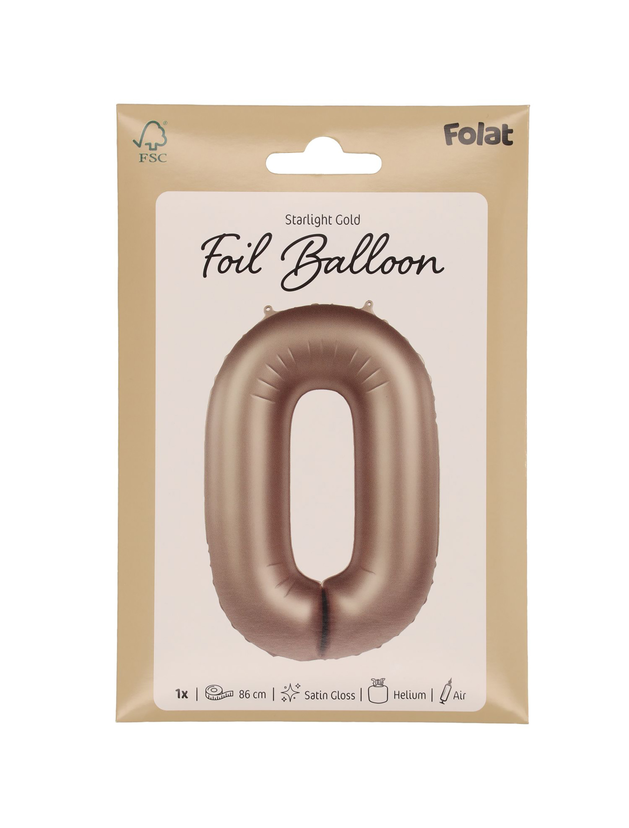 Folienballon Zahl 0 L matt gold