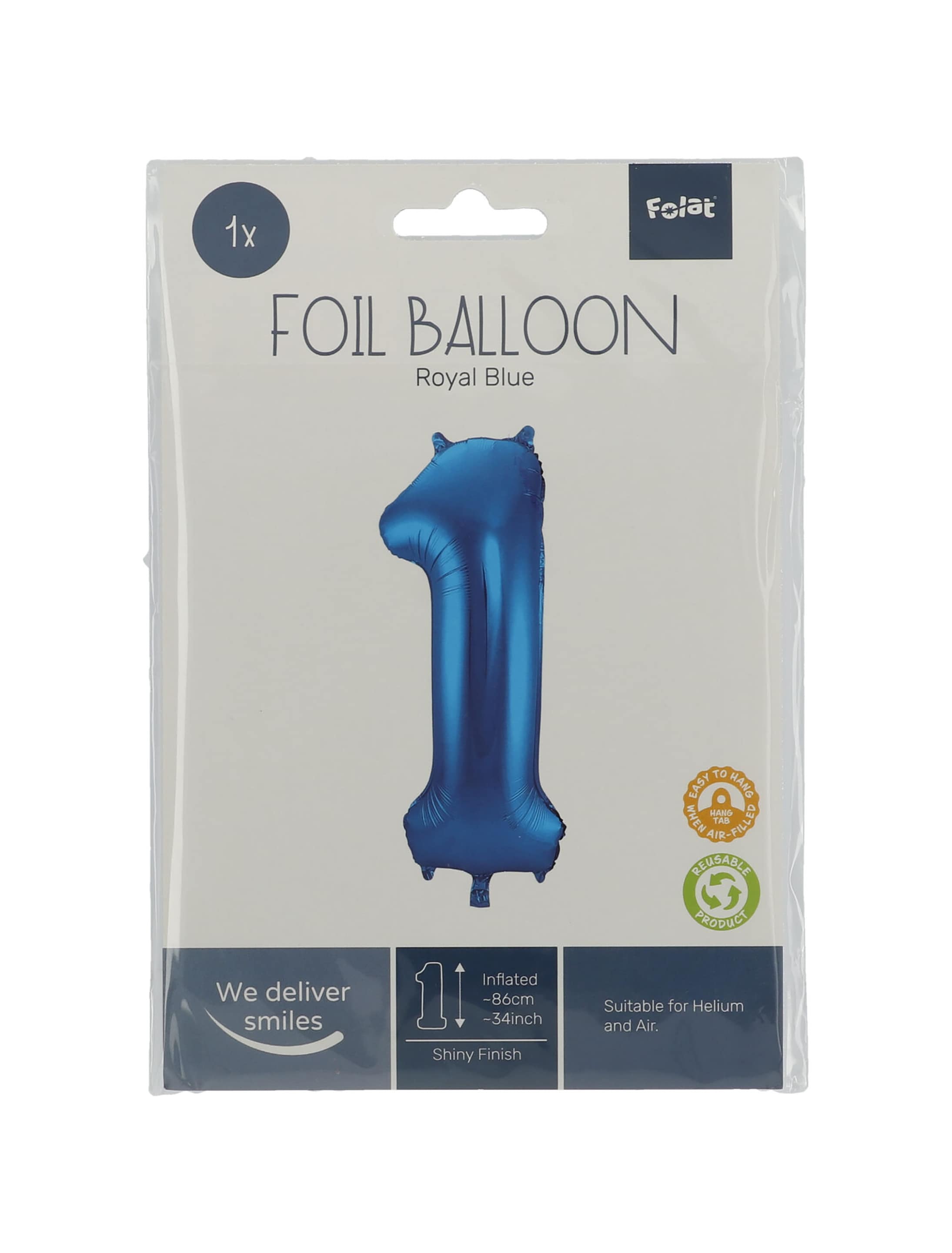 Folienballon Zahl 1 L blau
