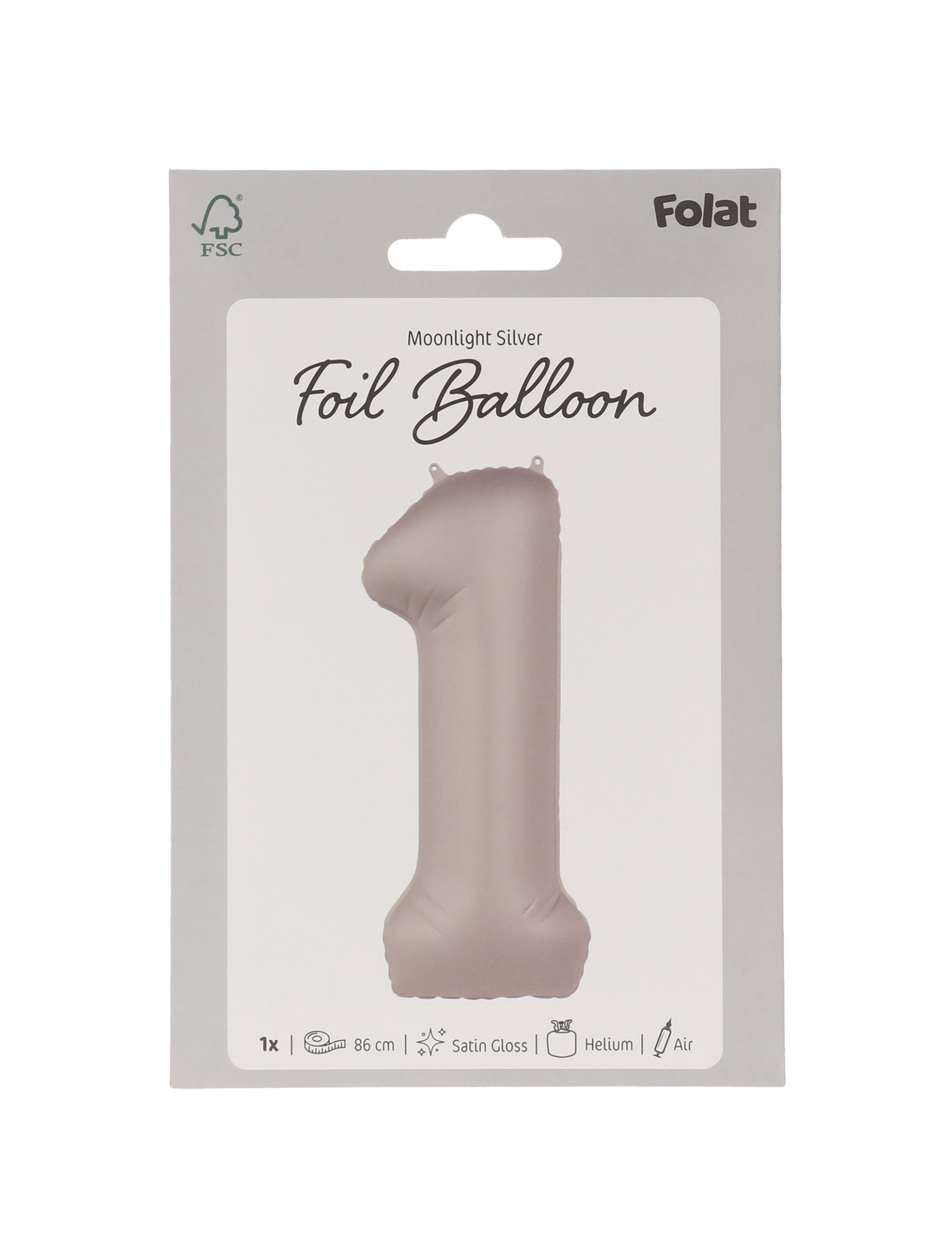 Folienballon Zahl 1 L matt silber