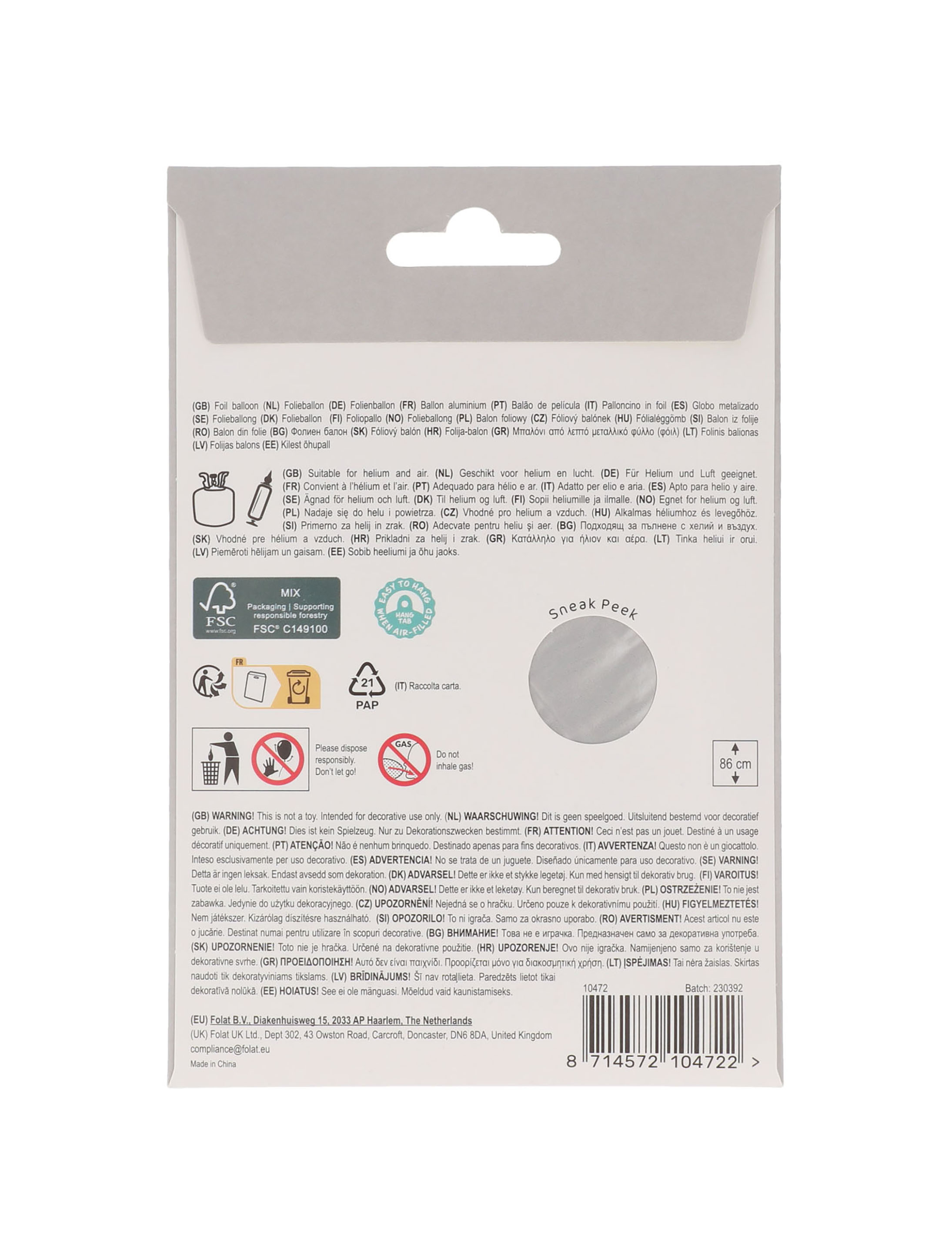 Folienballon 86 cm | Ballonzustand: ungefüllt | muss selbst befüllt werden.