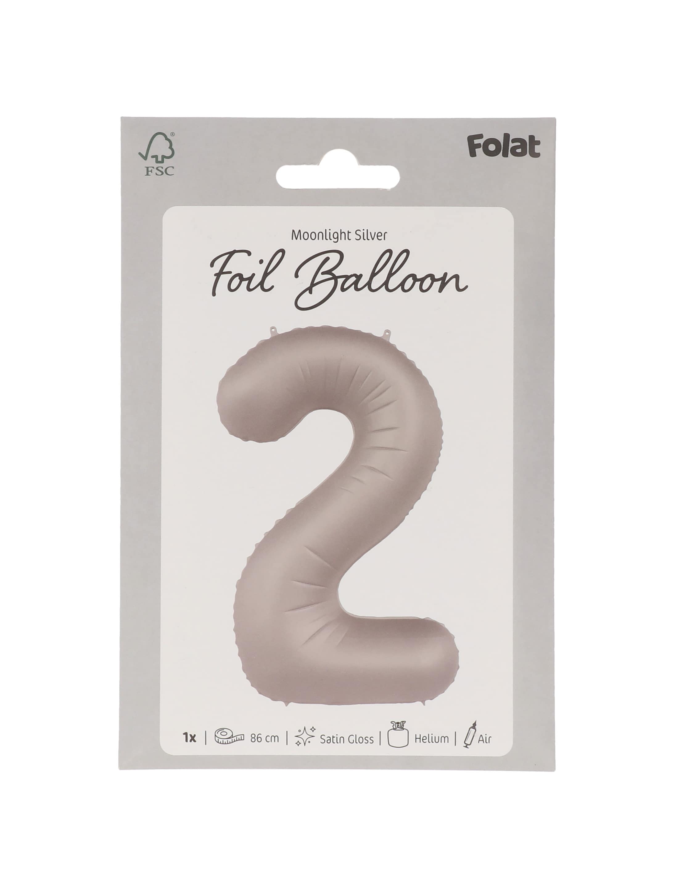 Folienballon Zahl 2 L matt silber