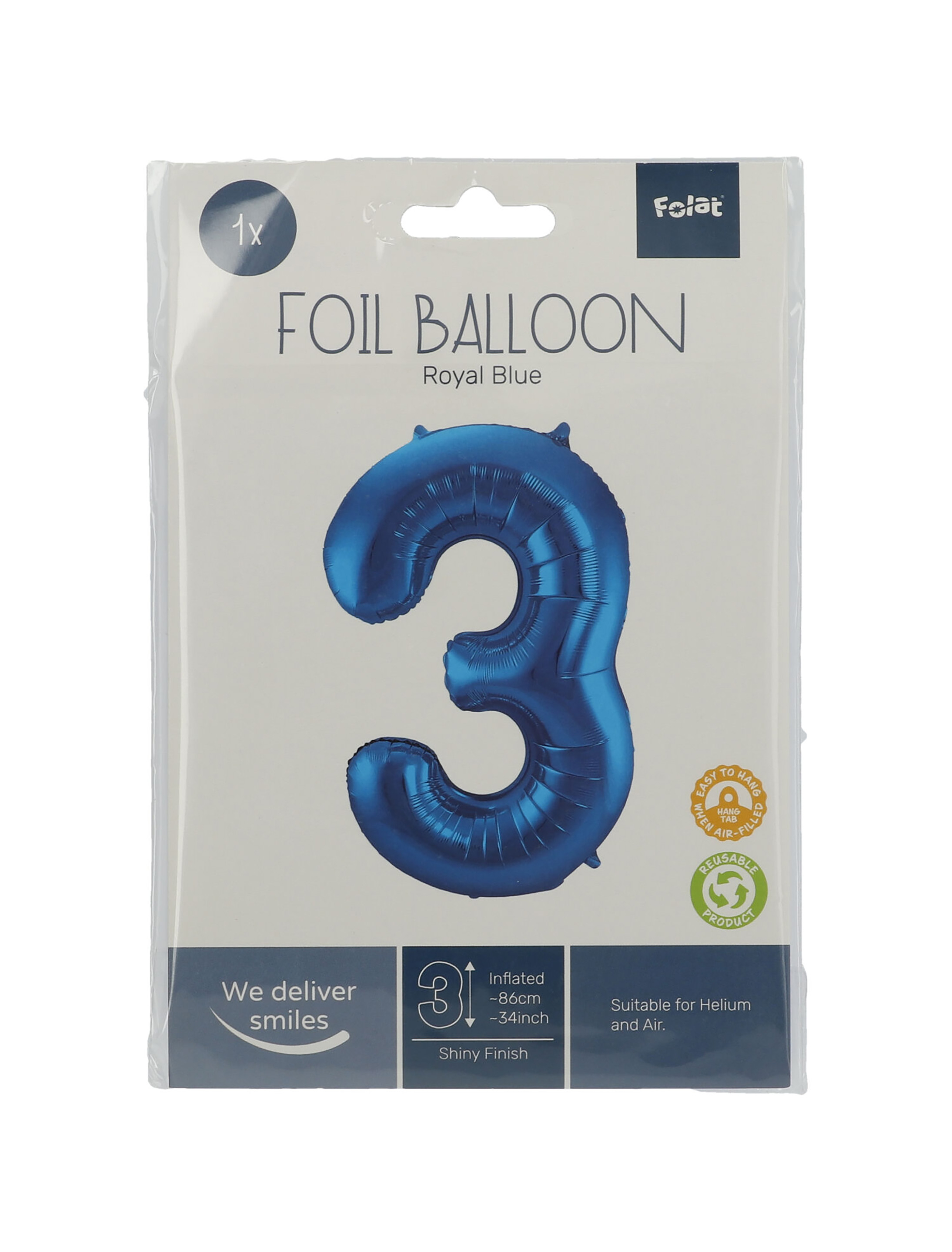 Folienballon Zahl 3 L blau