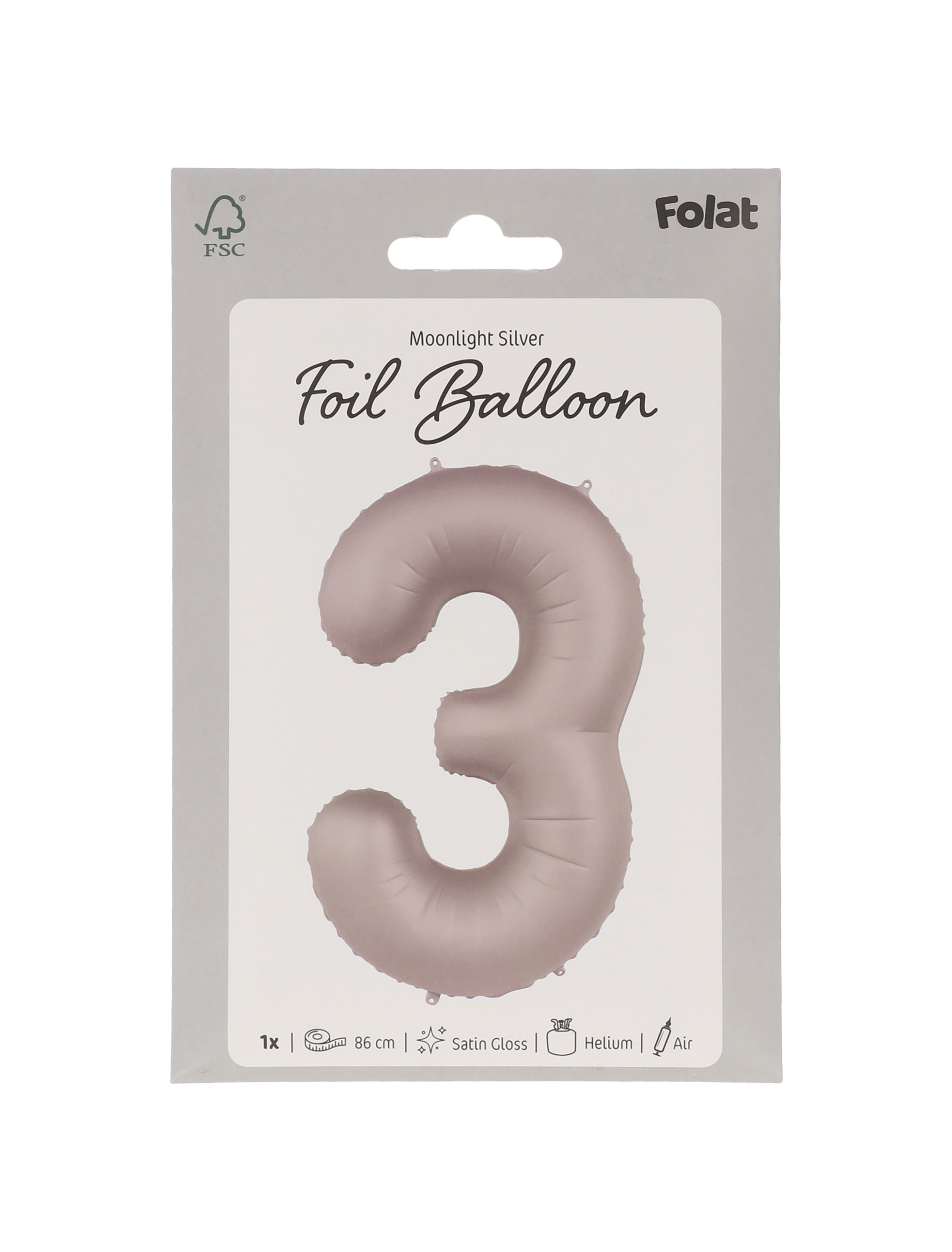 Folienballon Zahl 3 L matt silber