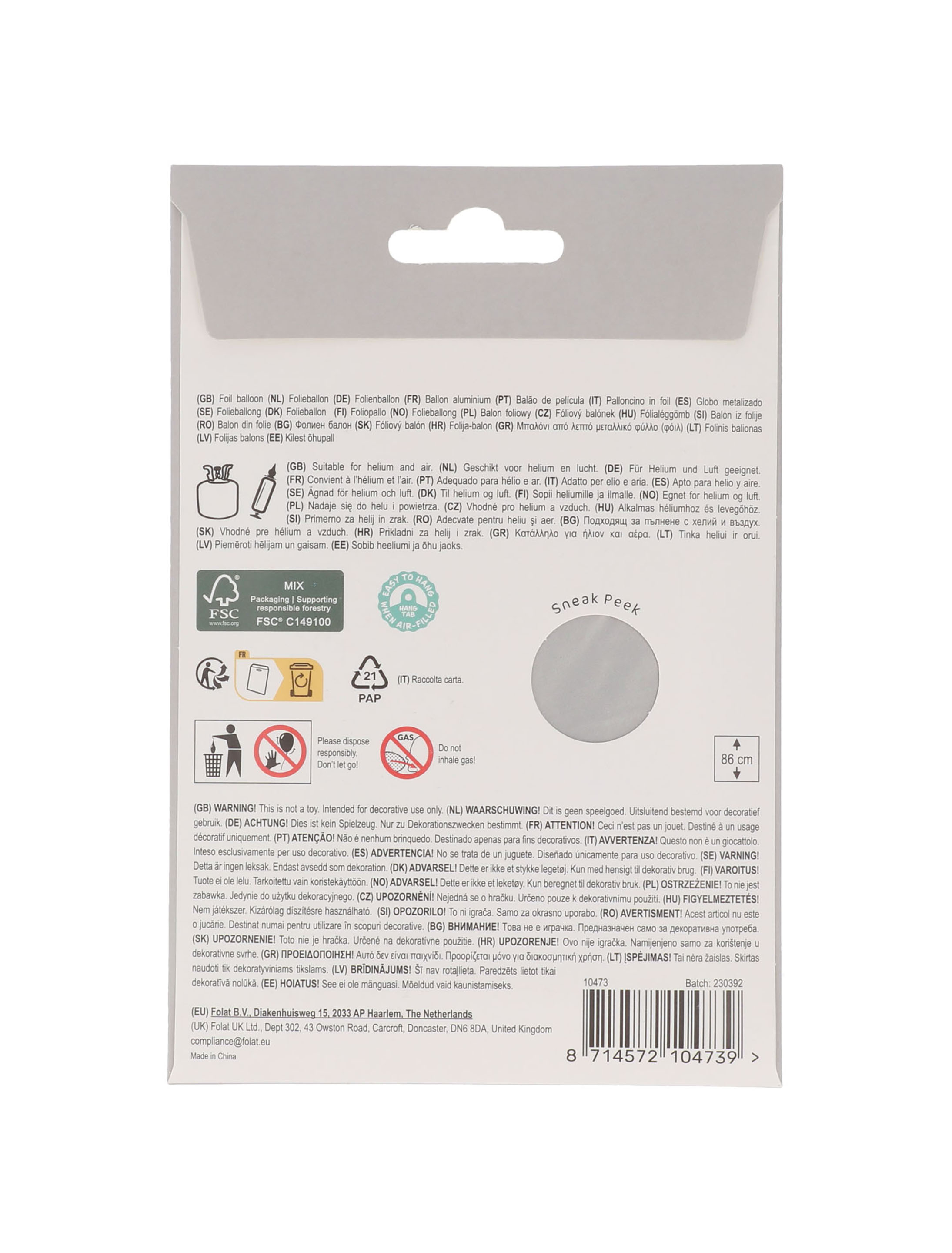 Folienballon 86 cm | Ballonzustand: ungefüllt | muss selbst befüllt werden.