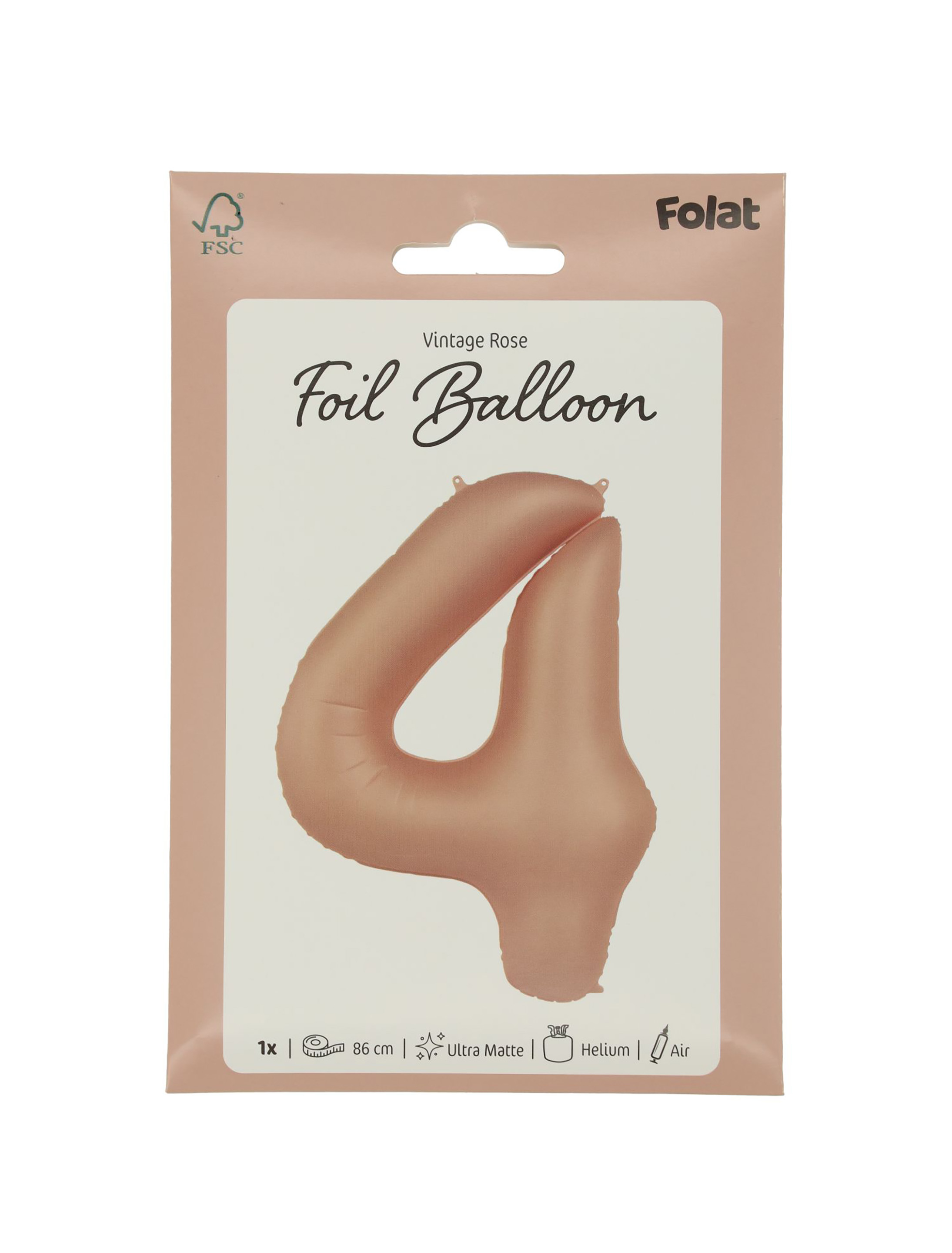 Folienballon Zahl 4 L matt rosa