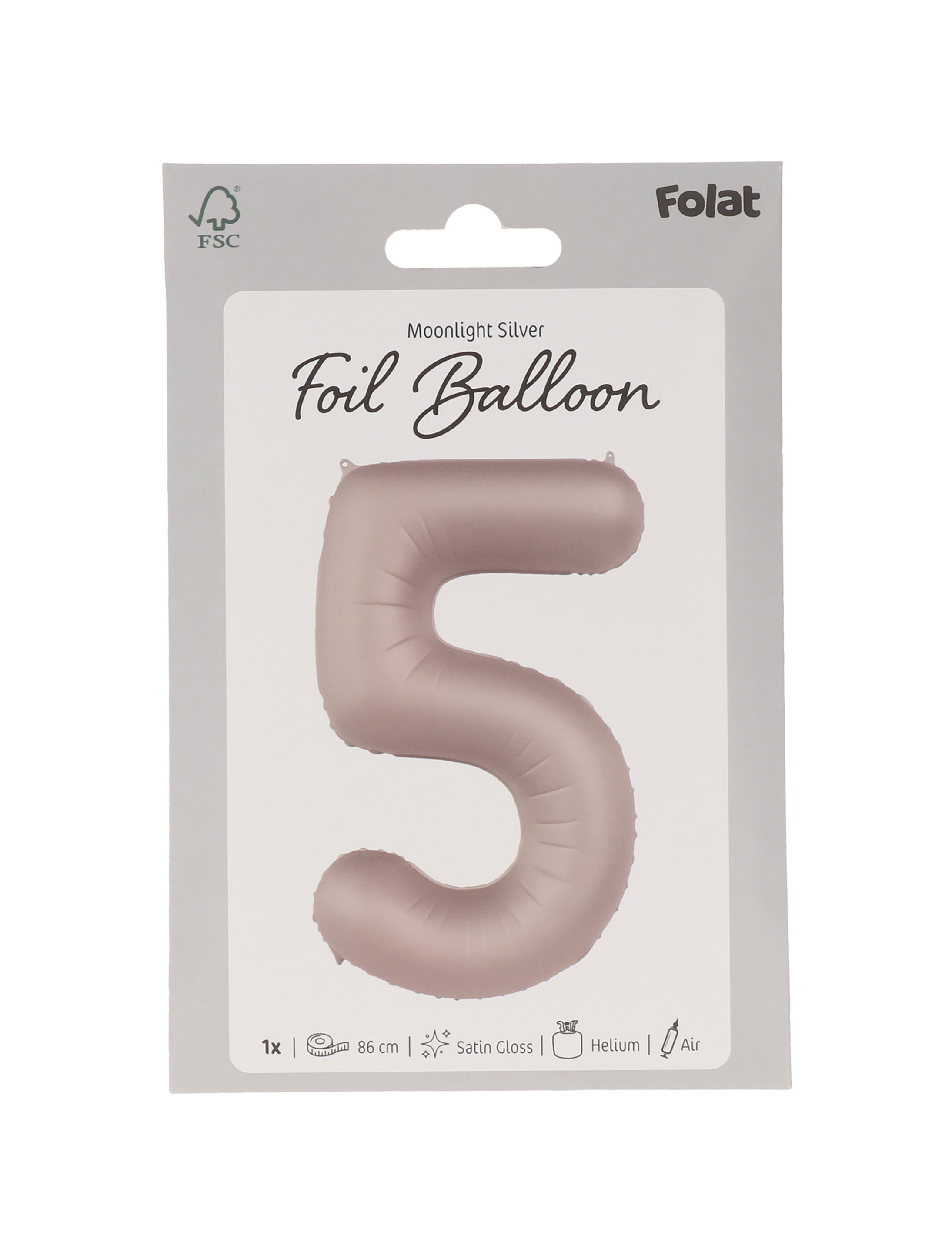 Folienballon Zahl 5 L matt silber