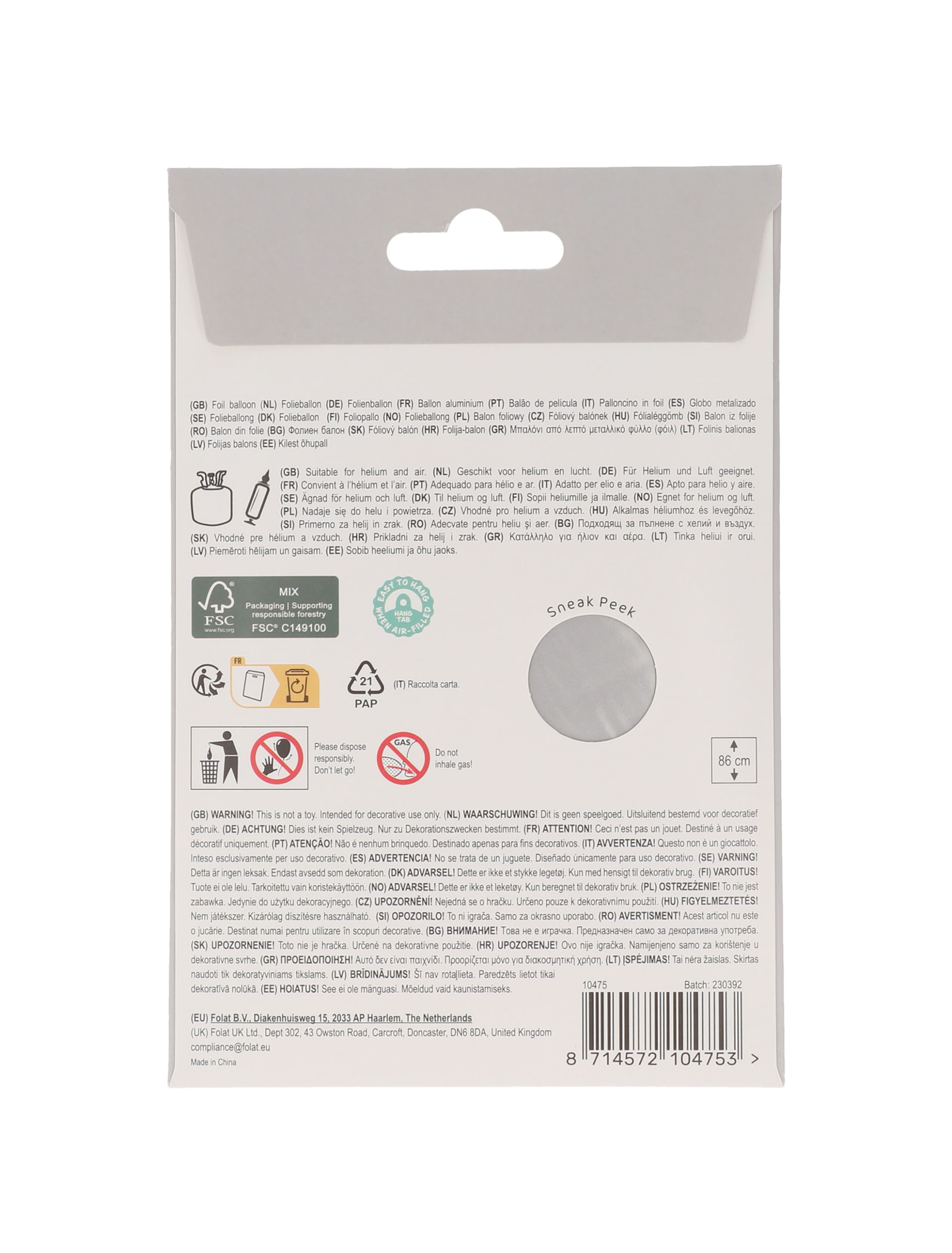 Folienballon 86 cm | Ballonzustand: ungefüllt | muss selbst befüllt werden.
