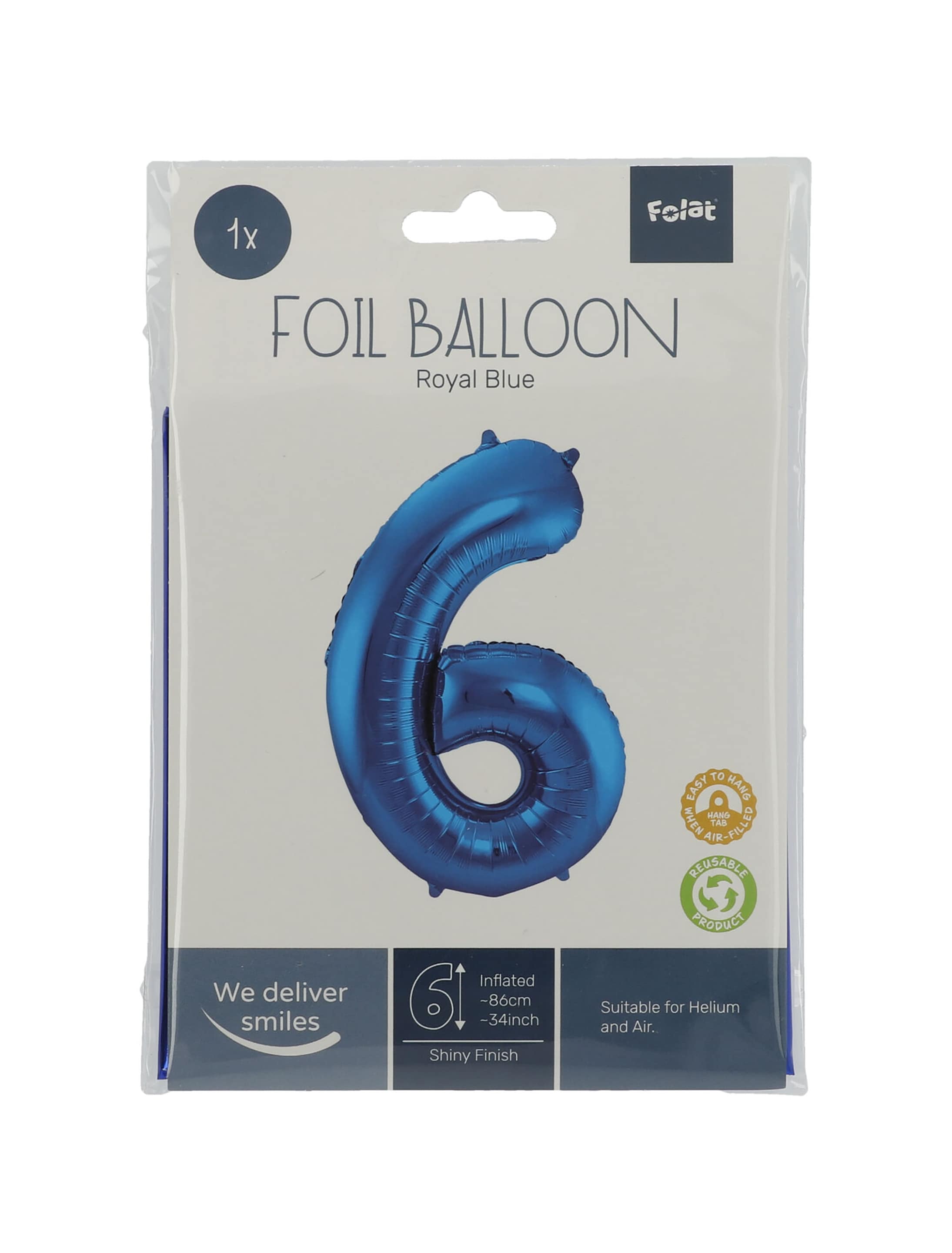 Folienballon Zahl 6 L blau
