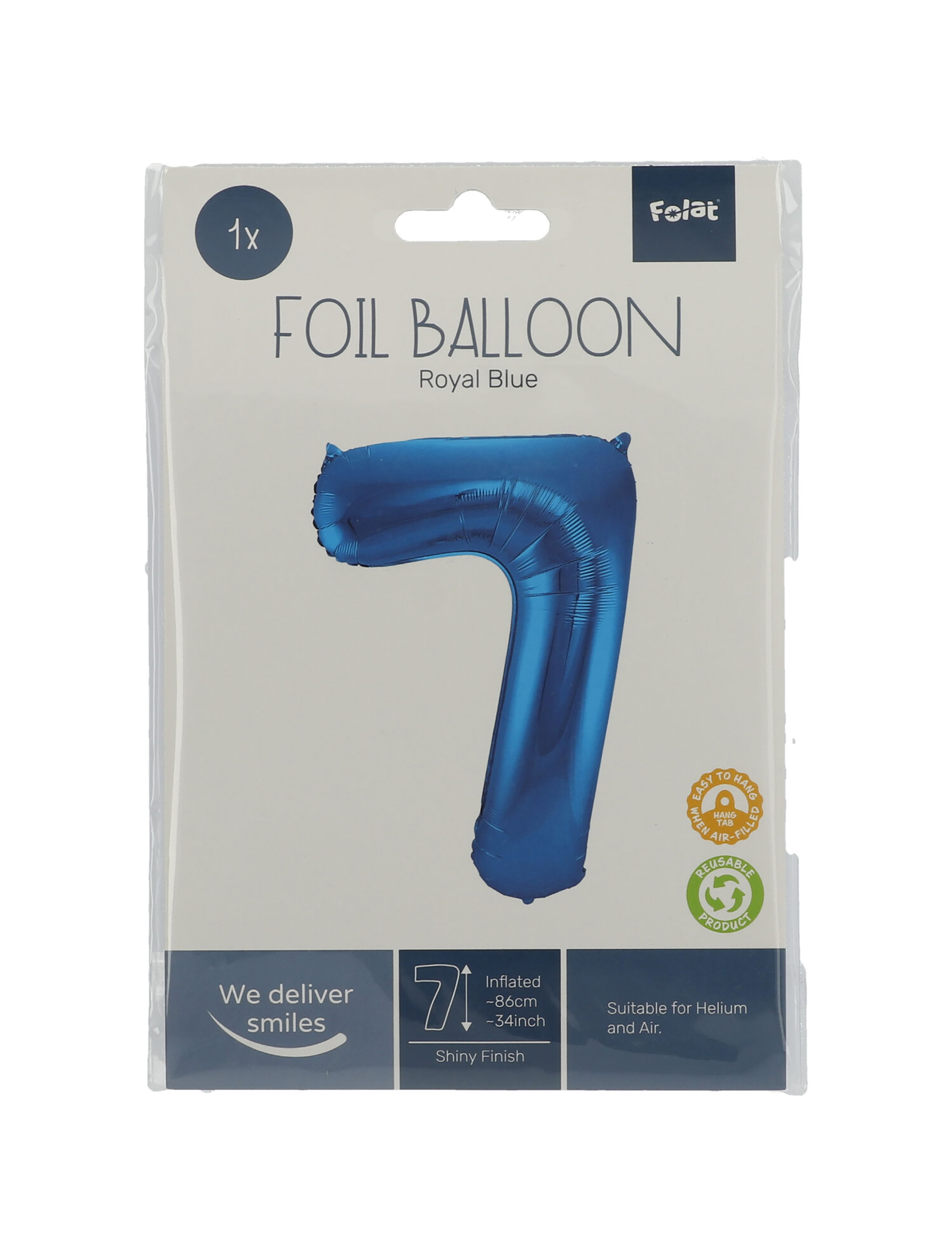Der perfekte Helium-Luftballon für jeden 7., 70. oder 77. Geburtstag! Ob am Jubiläum, zur Gnadenhochzeit oder anderen Anlässen, setze die Zahl mit einer beliebigen Zahl zusammen. Dieser Folienballon in metallicfarbener Optik lässt sich mit Ballon Gas Flaschen oder Luft befüllen und passt perfekt zu allen anderen Zahlen. Durch die vielen Ösen lässt er sich mit Hilfe von Ballonband ganz einfach mit beliebigen Zahlen verbinden.