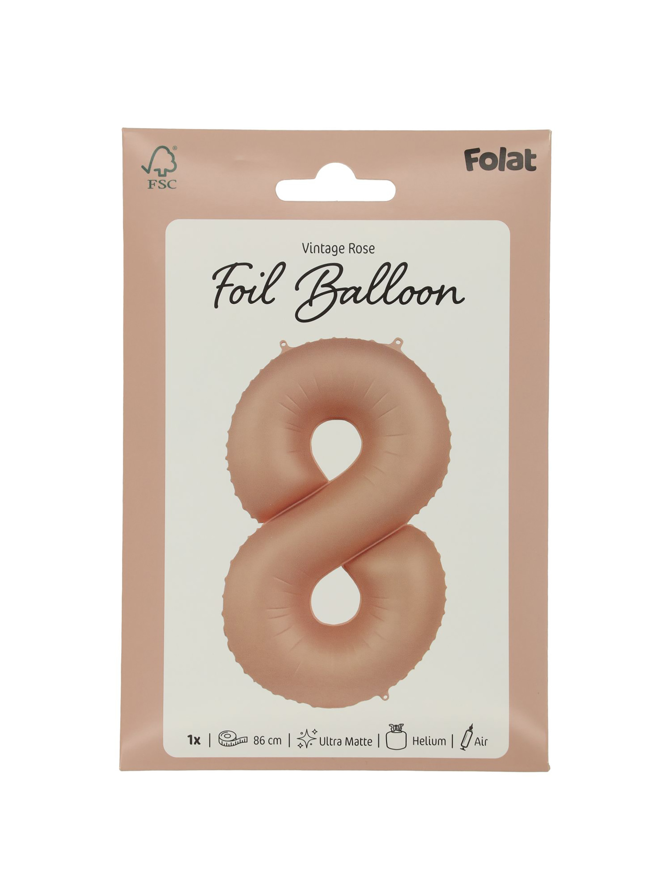 Folienballon Zahl 8 L matt rosa