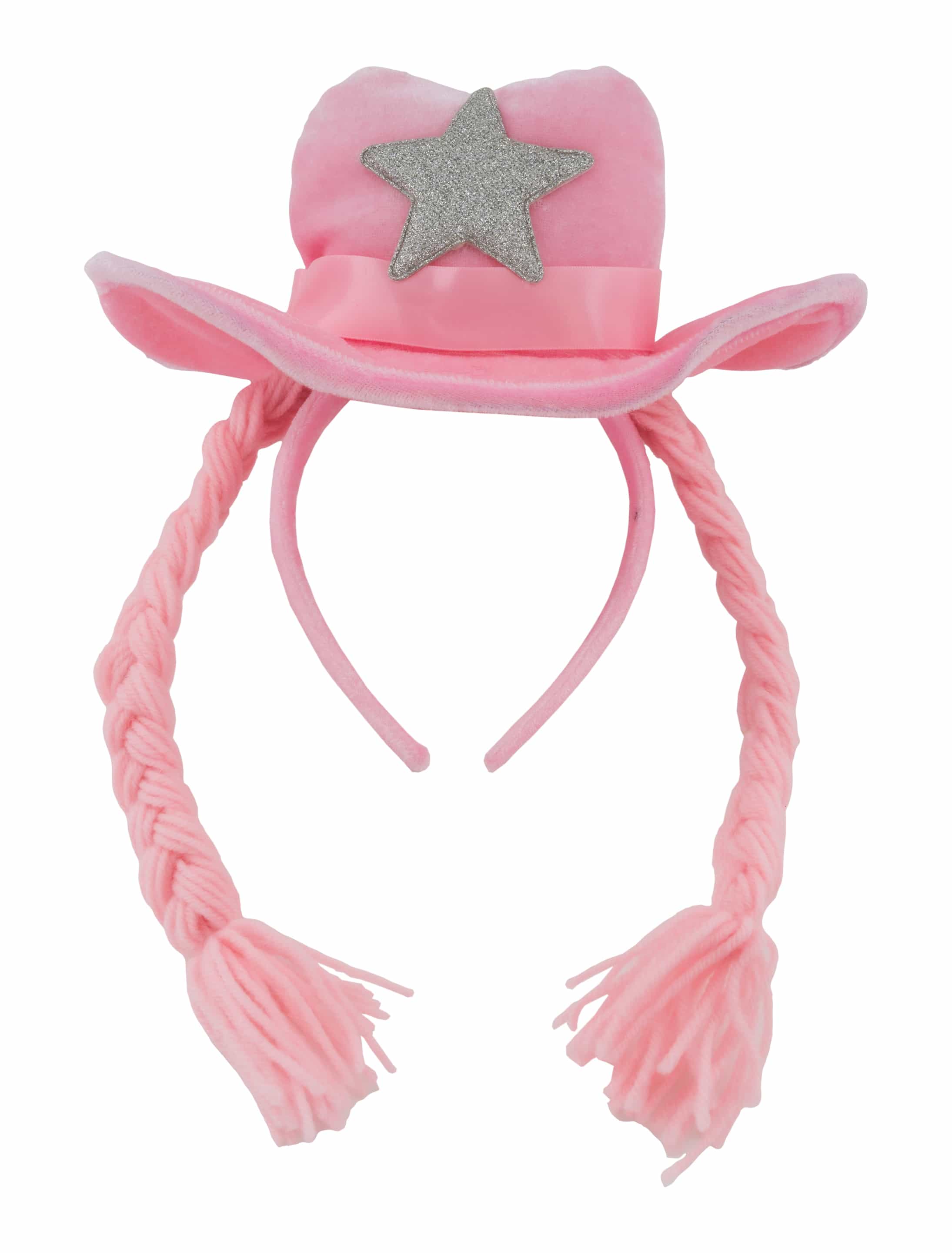 Haarreif Cowboyhut mit Zöpfen rosa