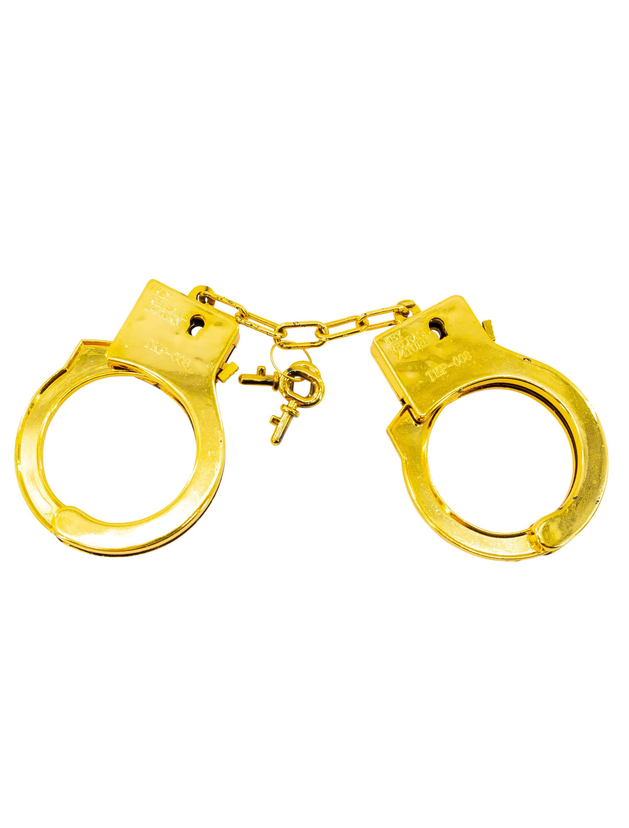 Handschellen wie diese sind fast schon zeitloses Accessoire. Dieses goldene Exemplar mit zwei Schlüsseln eignet sich für Polizisten, Häftlinge oder für erotische Neckereien unter Verliebten. Damit können sie sich aneinander fesseln und sind von nun an unzertrennlich! Daher sind die Handschellen auch für alle frivolen Kostüme bestens geeignet! Auch beim Junggesellenabschied (JGA) ein cooler Gag.