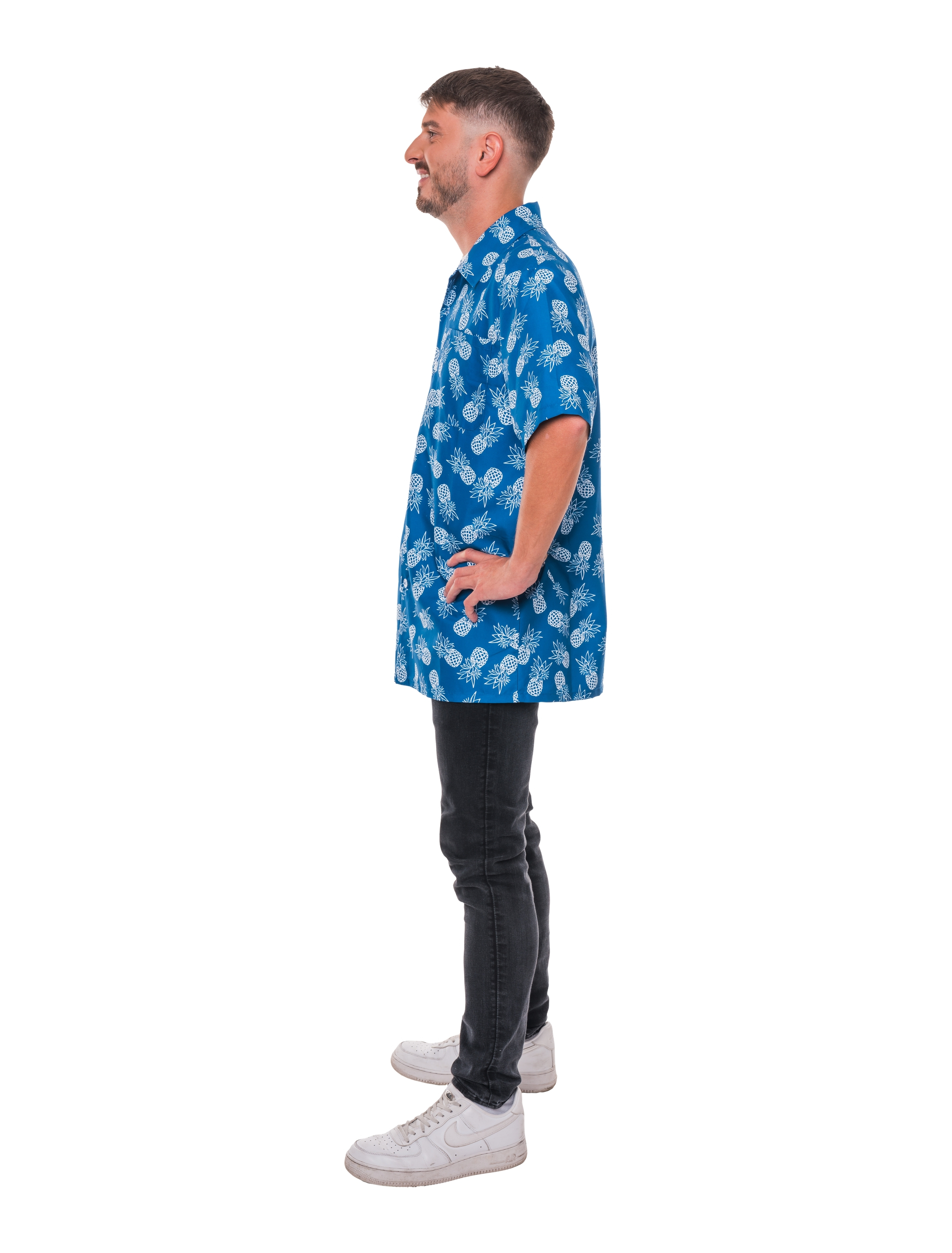 Fruchtig, frech und absolut sommertauglich – mit unserem Ananas Hemd für Herren setzt du ein stylisches Statement, das garantiert für gute Laune sorgt. Das Hemd hat kurze Ärmel und ist damit ideal für warme Tage, ob am Strand, auf Festivals oder beim Stadtbummel. Es lässt sich vorne ganz unkompliziert mit mehreren Knöpfen schließen und verfügt über eine kleine Brusttasche – praktisch und optisch charmant. Das Design zeigt eine Vielzahl von Ananassen, aus verschiedenen Blickwinkeln – ein Print, der tropischen Flair versprüht und Lust auf Sonne macht. Ob du es locker zu Shorts oder lässig zur Jeans kombinierst – dieses Hemd ist wie gemacht für alle, die es frisch, ausgefallen und unkompliziert mögen!