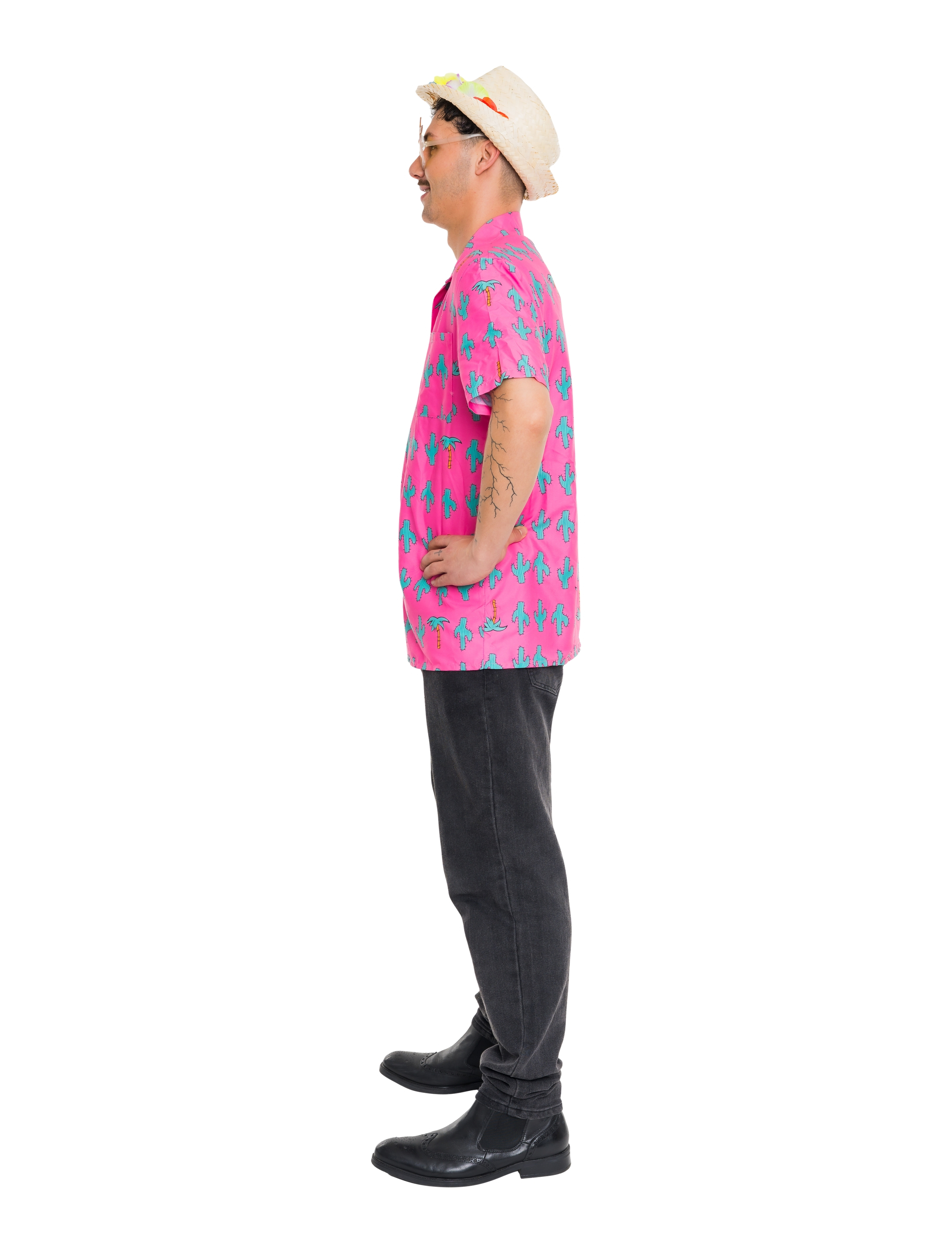 Lust auf Sommer, Sonne und eine Portion Wüsten-Charme? Dann ist unser Kaktus Hemd für Herren genau das Richtige für dich! Das luftige Kurzarmhemd überzeugt mit einem lockeren Schnitt und ist damit der perfekte Begleiter für warme Tage, entspannte Festivals oder einfach den Alltag mit Stil. Vorne lässt es sich ganz klassisch mit mehreren Knöpfen schließen und bietet mit der kleinen Brusttasche auch noch einen praktischen Hingucker. Das Highlight: Der farbenfrohe Allover-Print mit zahlreichen Kakteen sorgt sofort für gute Laune – und wer genau hinsieht, entdeckt sogar ein paar freche Palmen, die sich dazugesellt haben. Ob am Strand, auf der Gartenparty oder im Großstadtdschungel – mit diesem Hemd bist du lässig und stilvoll unterwegs!