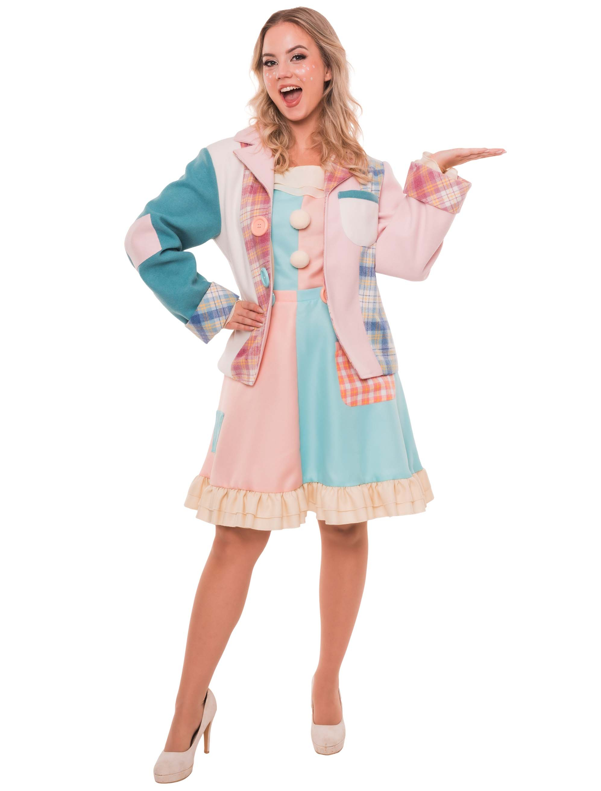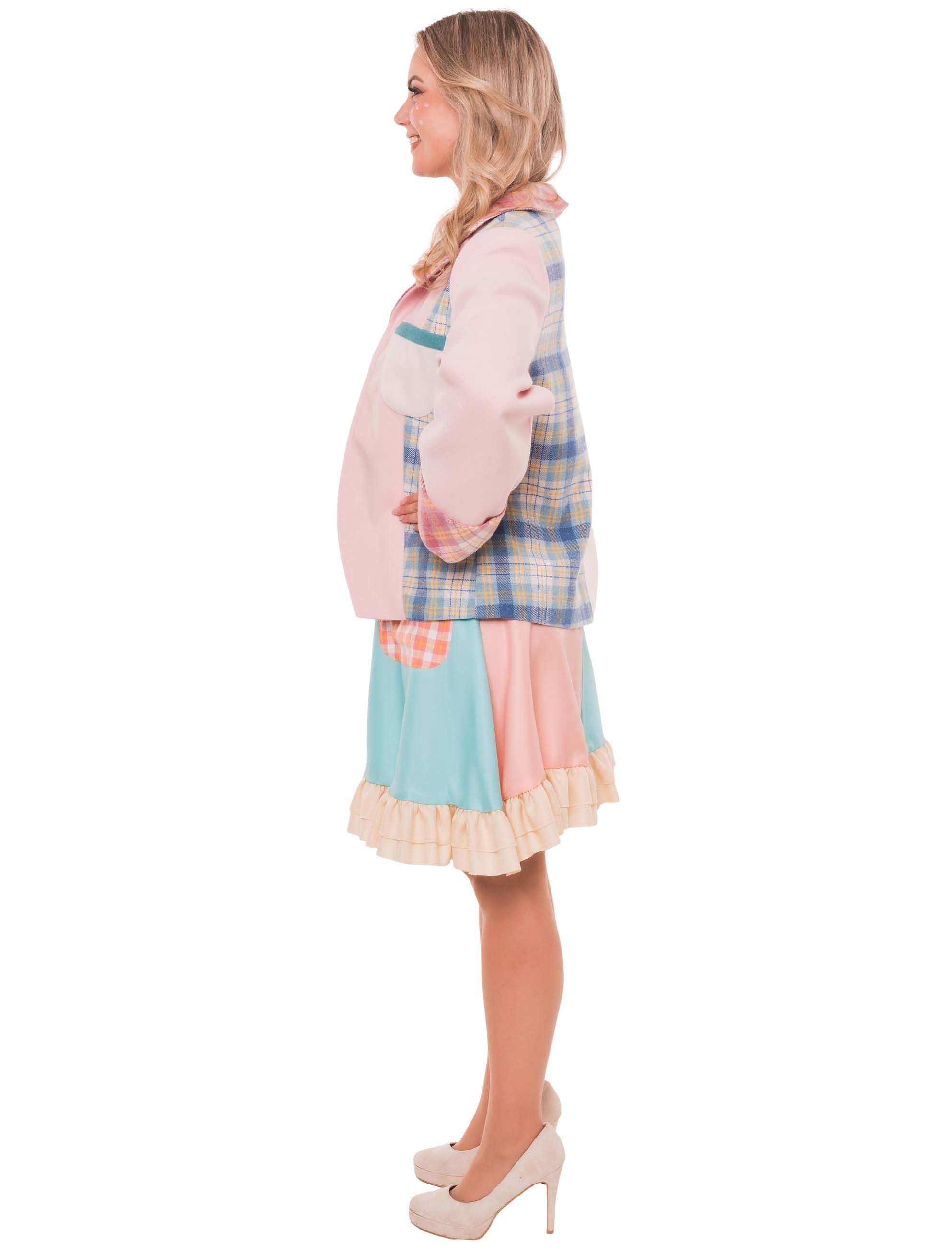Mit unserer zauberhaften Clownsjacke in zarten Pastellfarben wirst du garantiert alle Blicke auf dich ziehen! Die Jacke ist im klassischen Clown-Stil gehalten, aber durch die soften Farben bekommt sie eine besonders verspielte Note. Eine Brusttasche bietet Platz für kleine Accessoires oder einen bunten Stoffblumen-Gag. Zwei große, dekorative Knöpfe sorgen nicht nur für sicheren Halt, sondern auch für den typischen Clown-Look. Ideal für Karneval, Fasching, Motto- oder Kindergeburtstagsfeiern – mit dieser Jacke bist du immer bereit für deinen großen Auftritt!