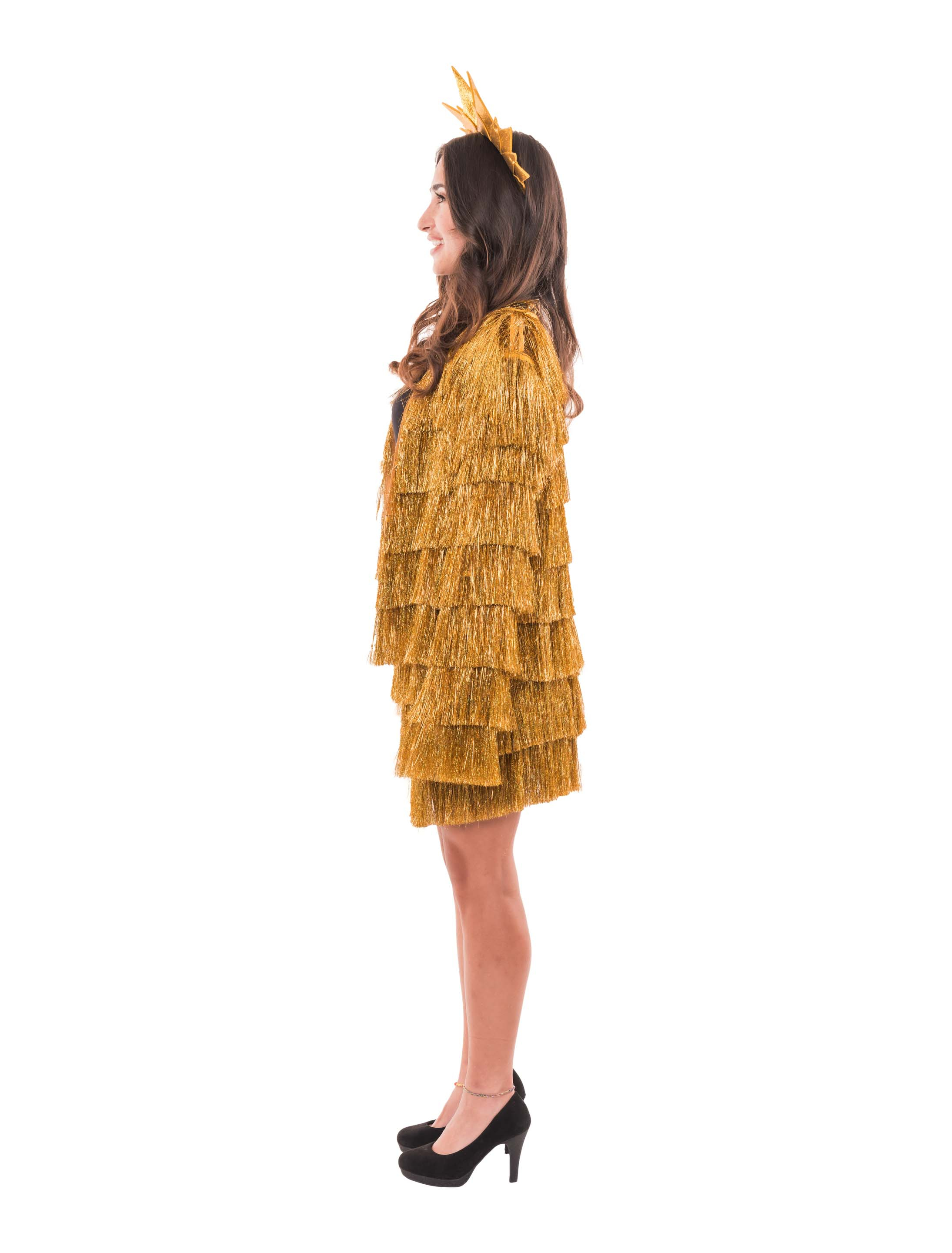 Mit unserer feinen Lametta Jacke für Damen bist du der funkelnde Mittelpunkt jeder Party! Diese außergewöhnliche Jacke ist gemacht für große Auftritte – glänzend, auffällig und voller Bewegung. Die langärmelige Jacke ist von oben bis unten in mehreren Lagen schimmerndem Lametta eingehüllt. Die feinen, glänzenden Streifen tanzen bei jeder Bewegung mit und erzeugen einen lebendigen, glitzernden Effekt, der garantiert für Aufmerksamkeit sorgt. Ob als Highlight fürs Festival, Karneval, die Bühne oder jede andere Gelegenheit, bei der du glänzen willst – mit dieser Jacke bist du bestens ausgestattet!