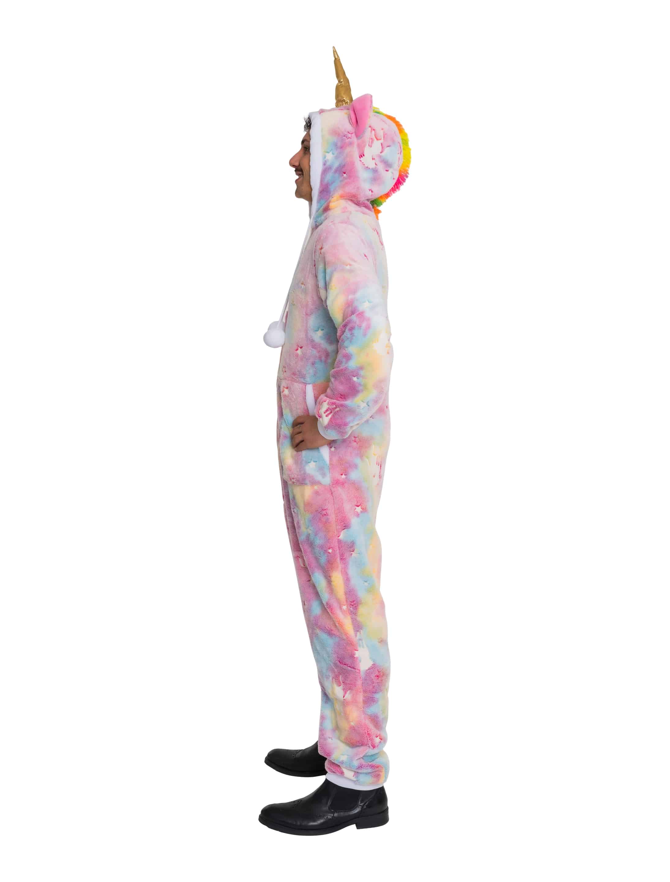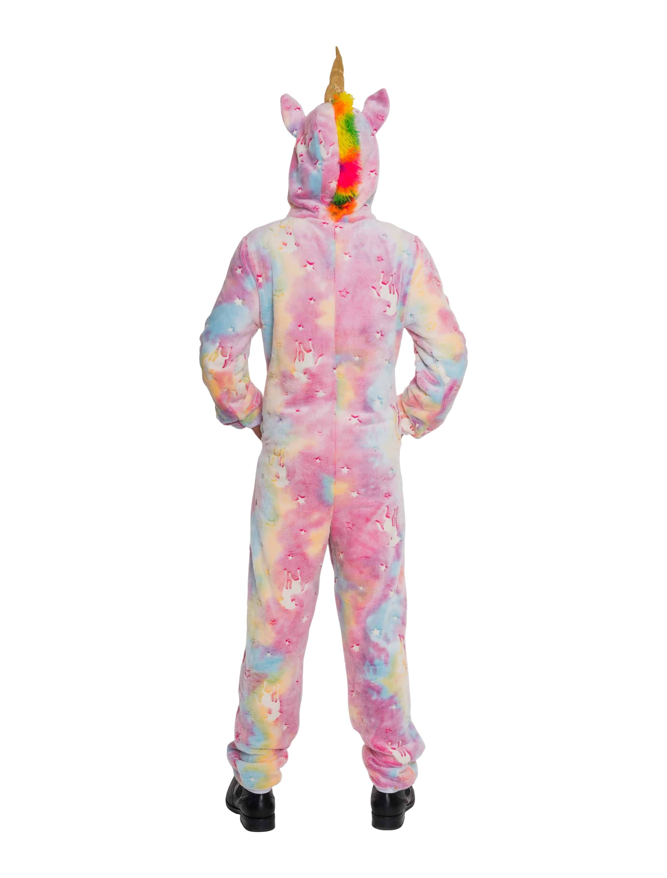 Mit unserem kuscheligen Einhorn Jumpsuit für Herren verwandelst du dich im Handumdrehen in ein magisches Fabelwesen! Die Kapuze stellt liebevoll den Kopf eines Einhorns dar – inklusive Horn. Der Jumpsuit hat zwei praktische Taschen, lange Bommel und lässt sich bequem per Reißverschluss schließen. Ideal für Karneval, Fasching oder gemütliche Verkleidungsabende zu Hause!