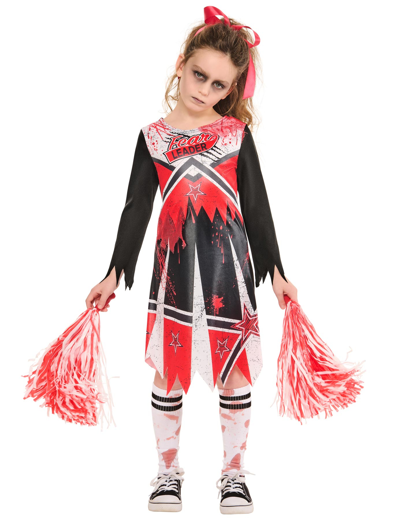 Kleid Zombie Cheerleader 2-tlg. Kinder schwarz/weiß/rot 134/140