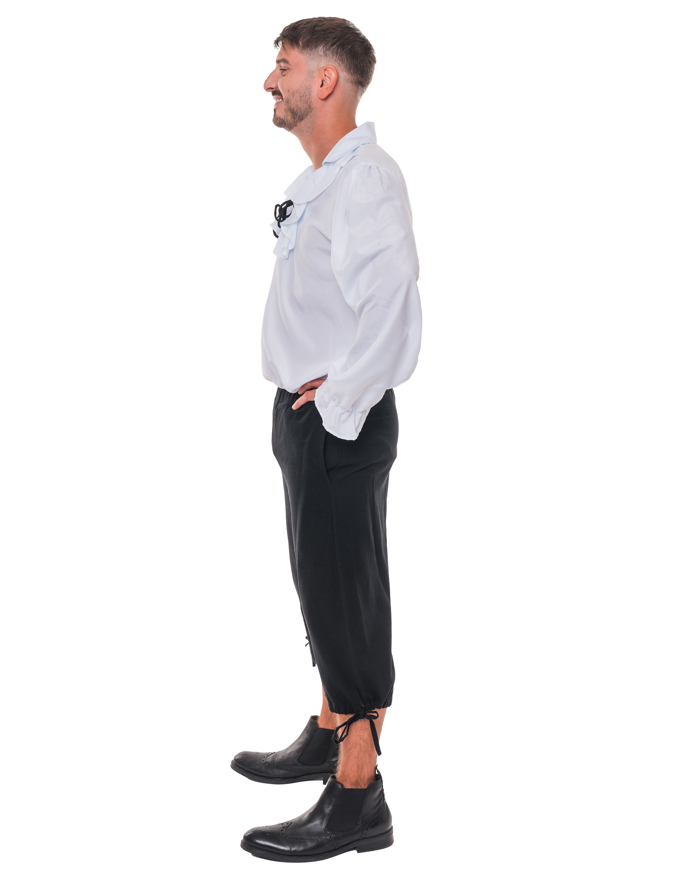 Aufgepasst, Edelmann der Verkleidungskunst – mit unserer Kniebundhose für Herren schreitest du stilvoll durch jedes Kostümabenteuer! Ob als tapferer Musketier, edler Hofnarr oder wilder Räuber vom Lande: Diese Hose ist dein treuer Begleiter für alle Zeiten. Dank elastischem Bund sitzt sie bequem. Der klassische Schnitt endet natürlich standesgemäß unter dem Knie. Also rein in die Kniebundhose und los geht’s in dein historisches Abenteuer!