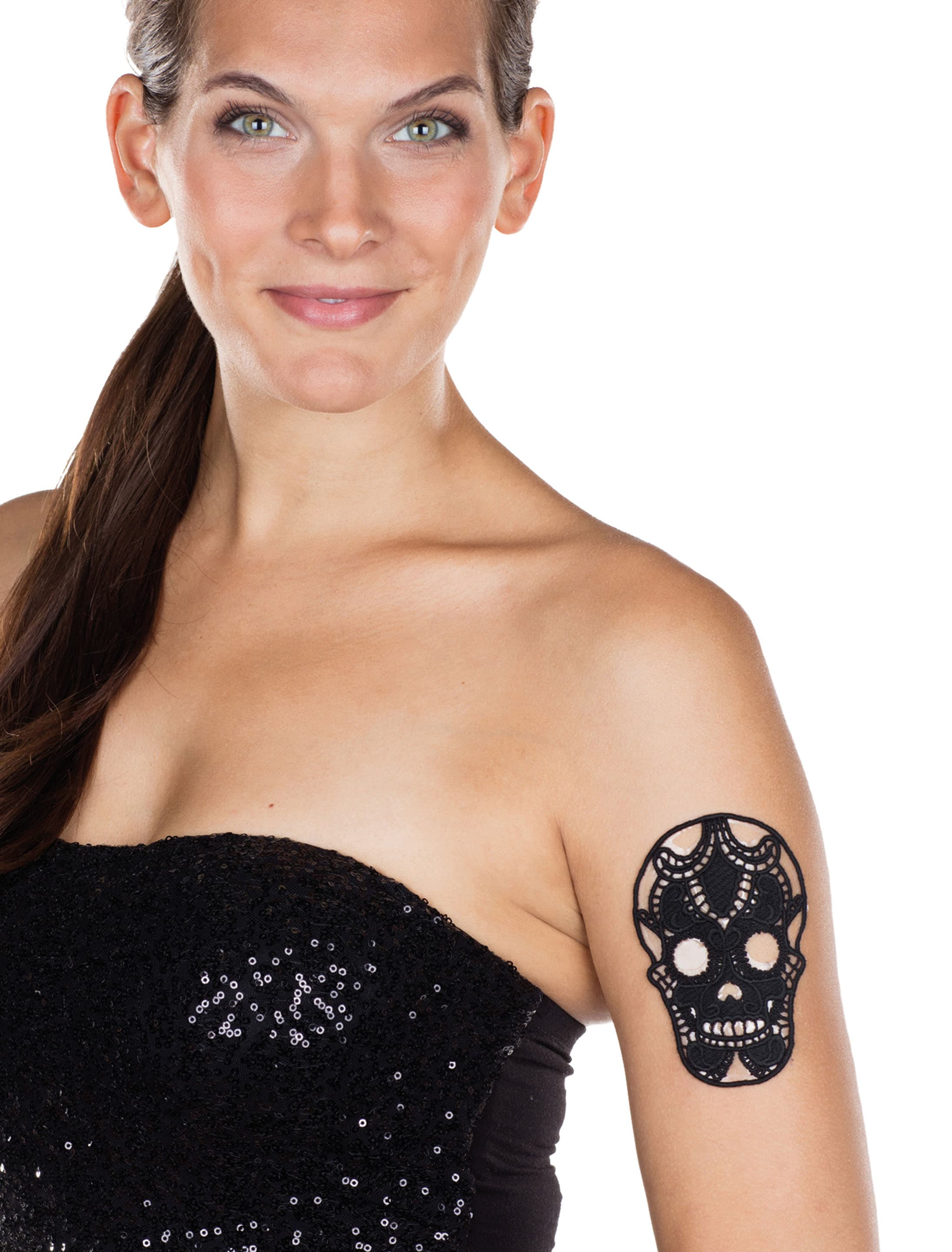Unser Körpertattoo Totenkopf ist das ideale Accessoire für alle, die ihrem Look eine geheimnisvolle und edle Note verleihen möchten. Das Tattoo besteht aus feiner Spitze und ist selbstklebend, sodass kein zusätzlicher Kleber nötig ist. Für die Anwendung einfach eine glatte, saubere Hautstelle wählen, die Schutzfolie vorsichtig abziehen und das Tattoo auf die trockene Haut kleben. Zum Wiederverwenden kannst du es behutsam ablösen und zurück auf die Schutzfolie legen. Sollte die Klebefunktion nachlassen, lässt sich das Tattoo mit einem Hautkleber problemlos erneut anbringen. Ein elegantes Highlight – perfekt für Halloween, Karneval oder Motto-Partys!