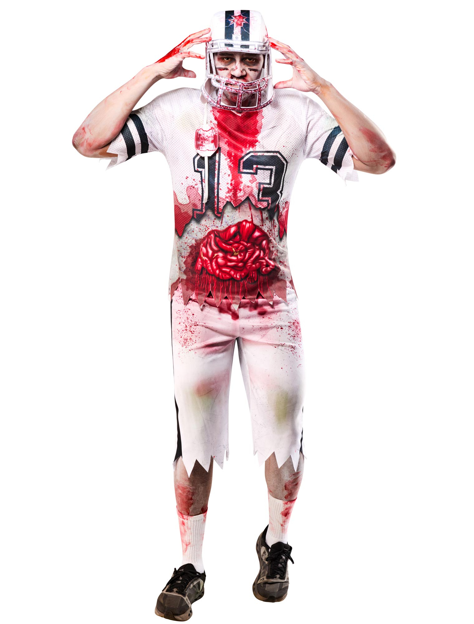 Kostüm Zombie Footballer 3-tlg. Herren weiß/rot L