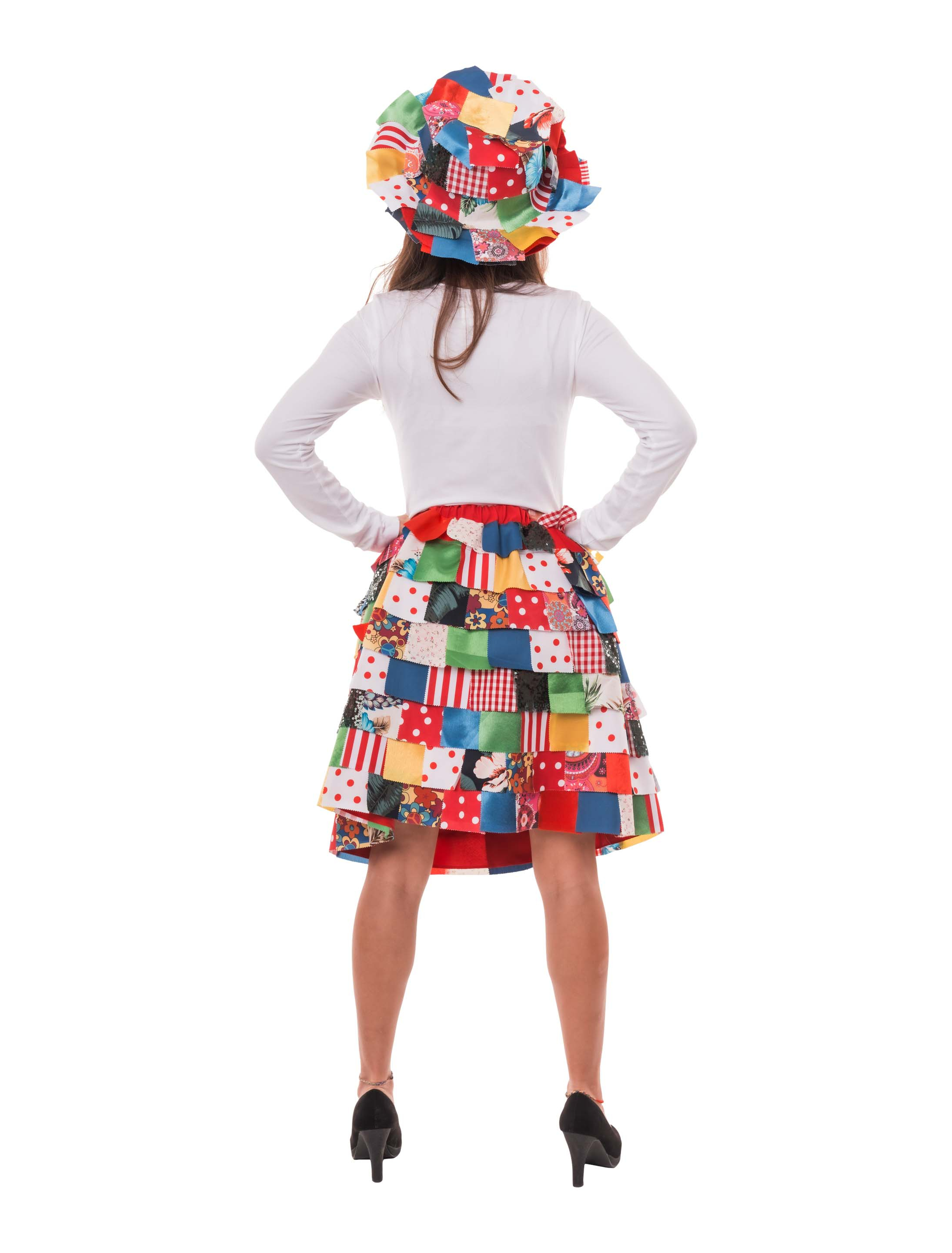 Unser Lappenrock für Damen bringt pure Farbenfreude in dein Outfit. Der elastische Bund sorgt für angenehmen Tragekomfort, während die unzähligen Lappen aus verschiedensten Stoffen, Farben und Mustern den Rock einzigartig machen. Jeder Lappen sitzt ein wenig anders, wodurch ein lebendiges und fröhliches Gesamtbild entsteht. Ob Karneval, Straßenumzug oder Mottoparty – mit unserem Lappenrock bist du garantiert mittendrin im bunten Treiben!