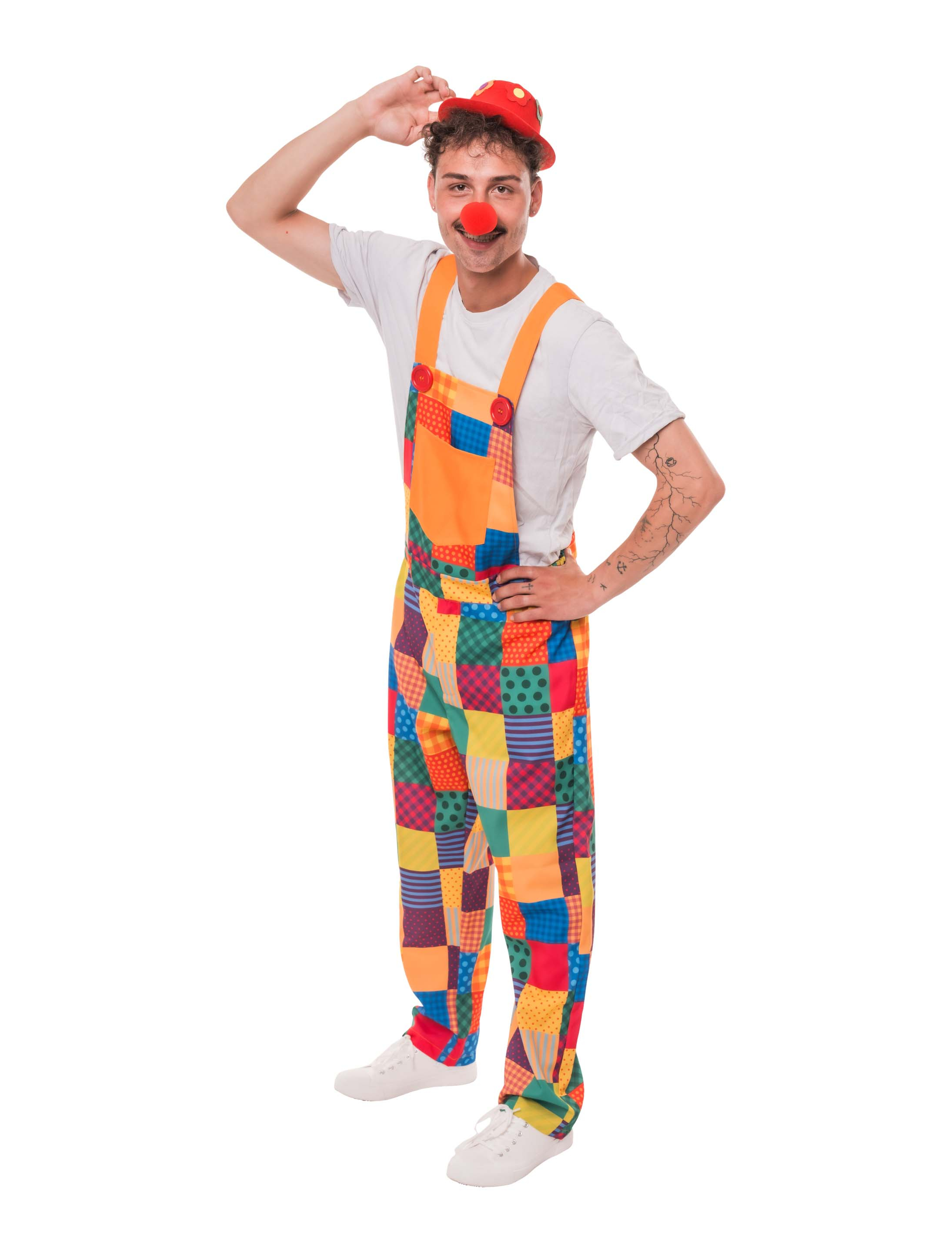 Unsere Latzhose Clown ist die ideale Basis für ein buntes Spaß-Outfit. Die Latzhose lässt sich über zwei verstellbare Träger einfach an- und ausziehen und hat einen elastischen Bund für angenehmen Sitz. Vorne sorgt ein praktischer Reißverschluss für zusätzlichen Komfort, und die große Tasche auf der Vorderseite ist nicht nur nützlich, sondern passt auch perfekt zum klassischen Clownsdesign. Ob Karneval, Kinderfest oder Mottoparty – mit unserer Clowns Latzhose bist du bereit für jede Menge Spaß und große Auftritte!