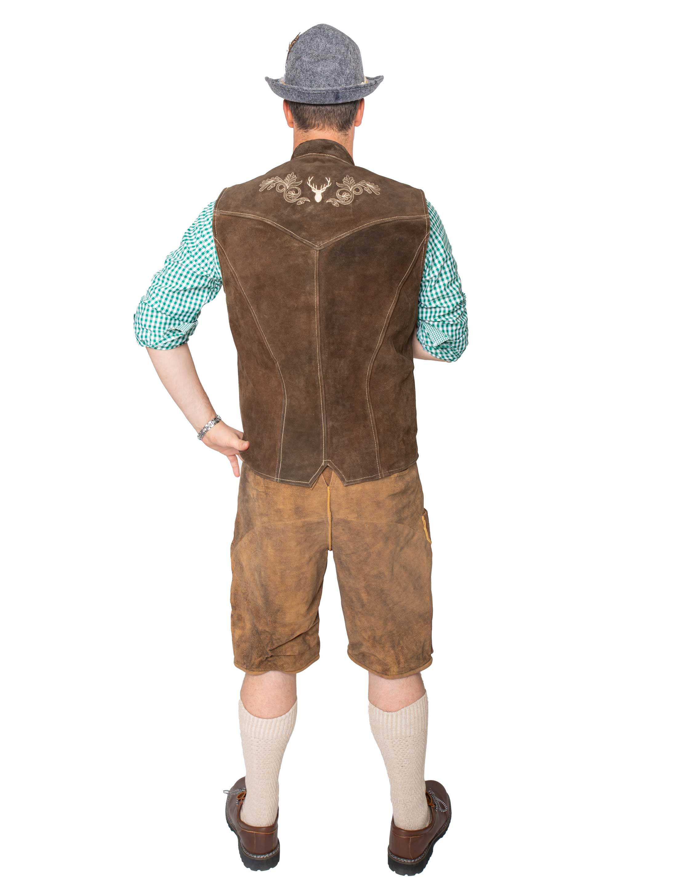 Tradition trifft Stil! Mit unserer hochwertigen Trachtenweste aus Rindsleder bringst du rustikalen Charme und echte Tradition in dein Outfit. Die kunstvolle Hirsch-Stickerei auf Vorder- und Rückseite sorgt für den perfekten Trachten-Look – stilvoll, klassisch und mit einem Hauch von Wildromantik. Drei geräumige Taschen bieten genug Platz für alles, was du auf dem Fest oder in der Berghütte brauchst. Egal ob Volksfest, Familienfeier oder einfach ein stilvoller Auftritt in Leder – mit dieser Weste bist du immer passend gekleidet. Also, rein in die Tracht und los geht’s!