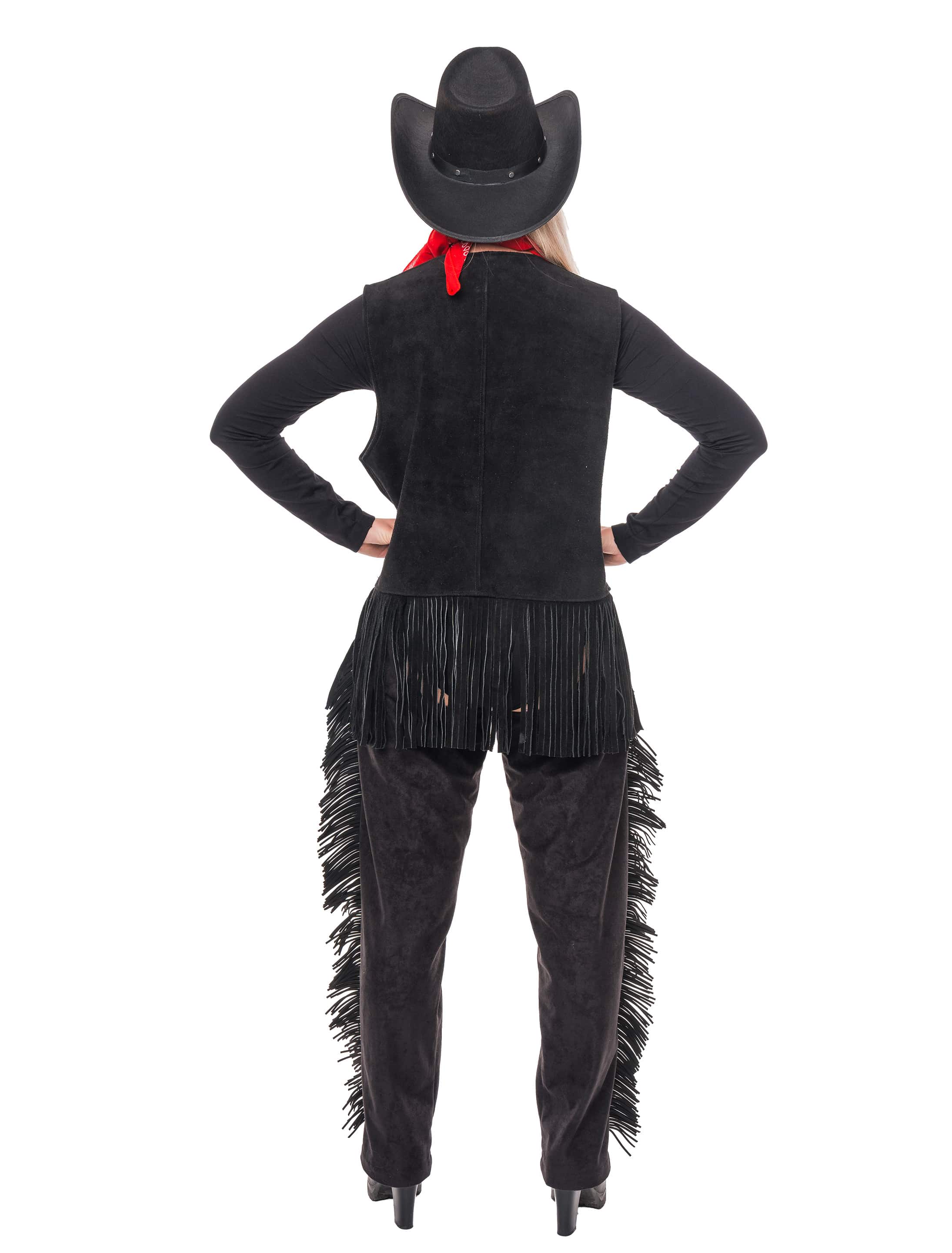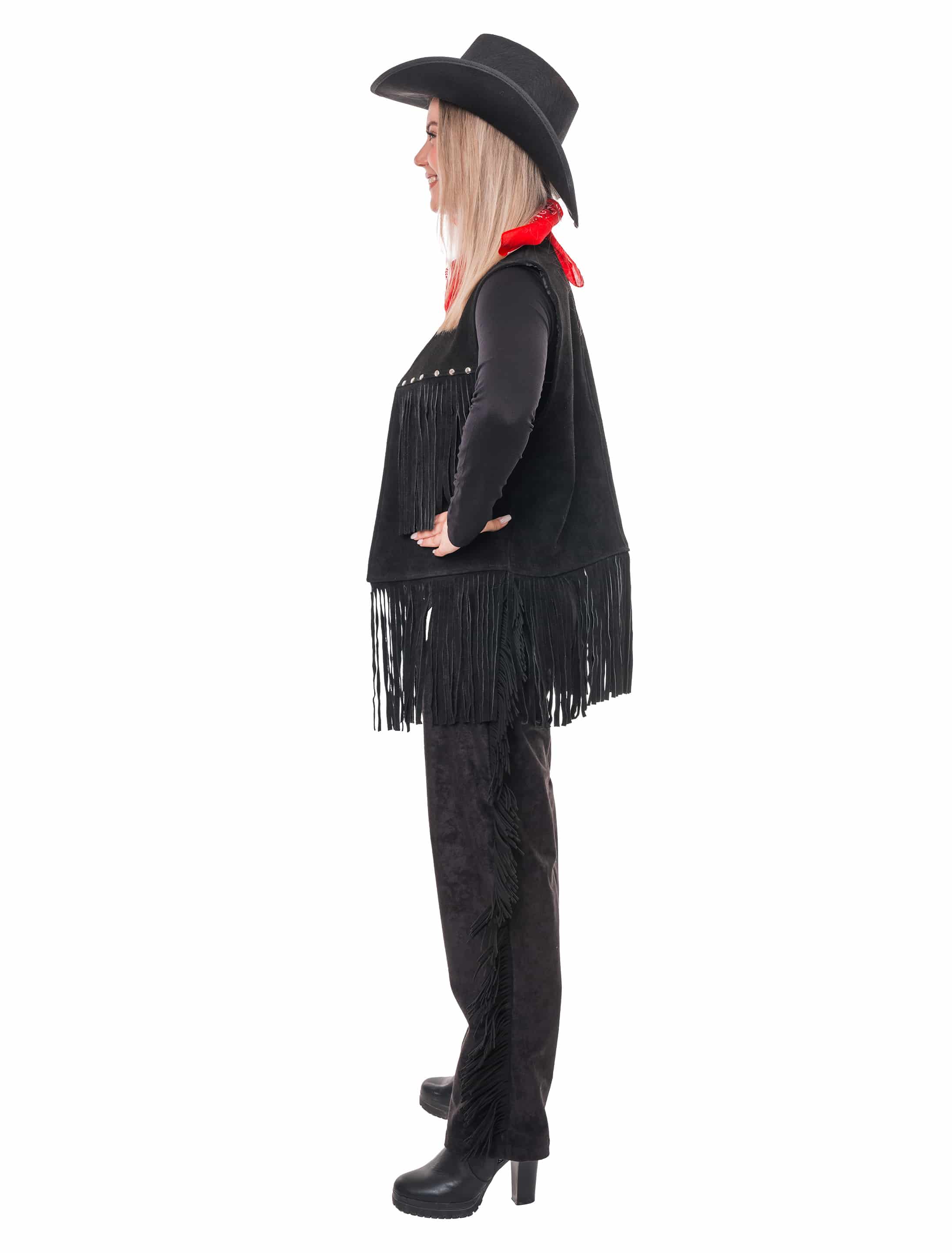Lederweste mit Fransen Damen schwarz L/XL