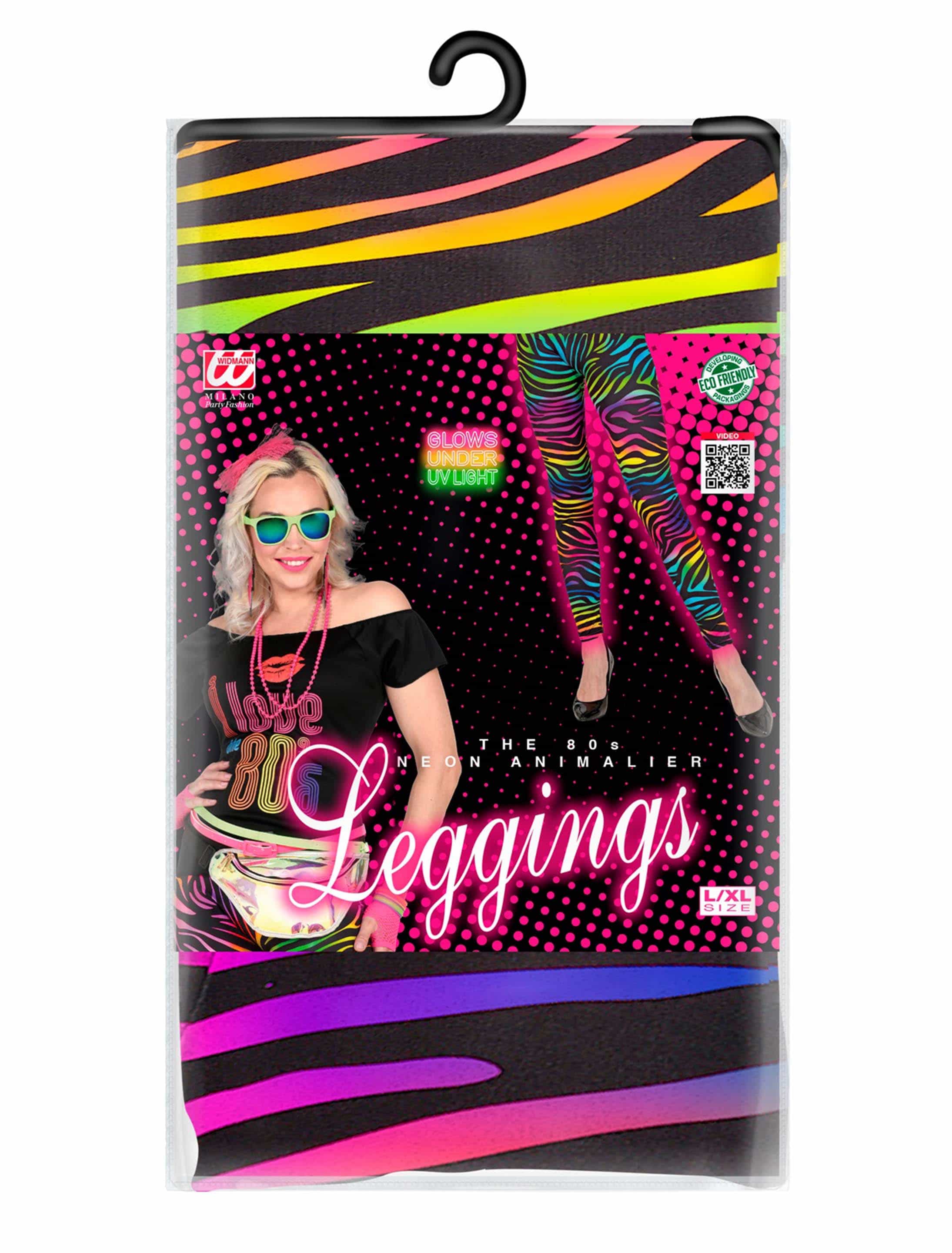 Unsere Leggings 80er Tigerprint für Damen bringt den wilden Retro-Vibe der 80er Jahre perfekt zurück! Die eng anliegende Leggings ist mit einem auffälligen Tigerprint versehen, welches unter UV-Licht leuchtet und jedes Outfit zu einem Statement macht. Das elastische Material sorgt für eine bequeme Passform und optimale Bewegungsfreiheit – ideal zum Tanzen, Feiern oder einfach für einen stylischen Auftritt. Ob für Karneval, 80er-Mottopartys oder Festivals – mit unserer Tigerprint Leggings bist du bereit, die Tanzfläche im wilden Animal-Style zu erobern!