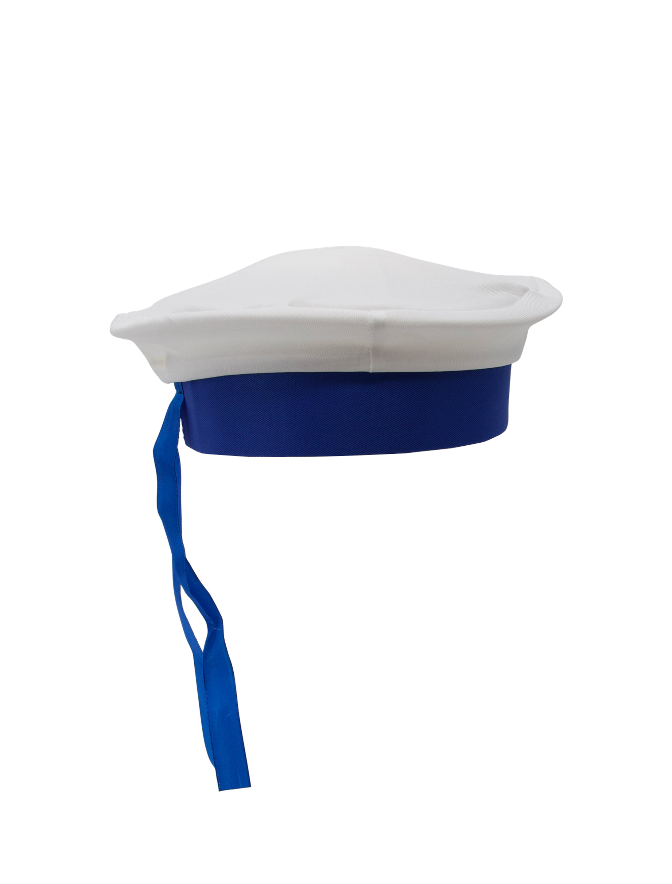 Mit dieser klassischen Matrosenmütze bringst du sofort maritimes Flair in dein Outfit. Die weiße Kappe mit blauem Saum, goldfarbenem Anker-Emblem und Schleifenband ist perfekt für Karneval, Mottopartys oder als Accessoire für dein Seefahrer-Kostüm.