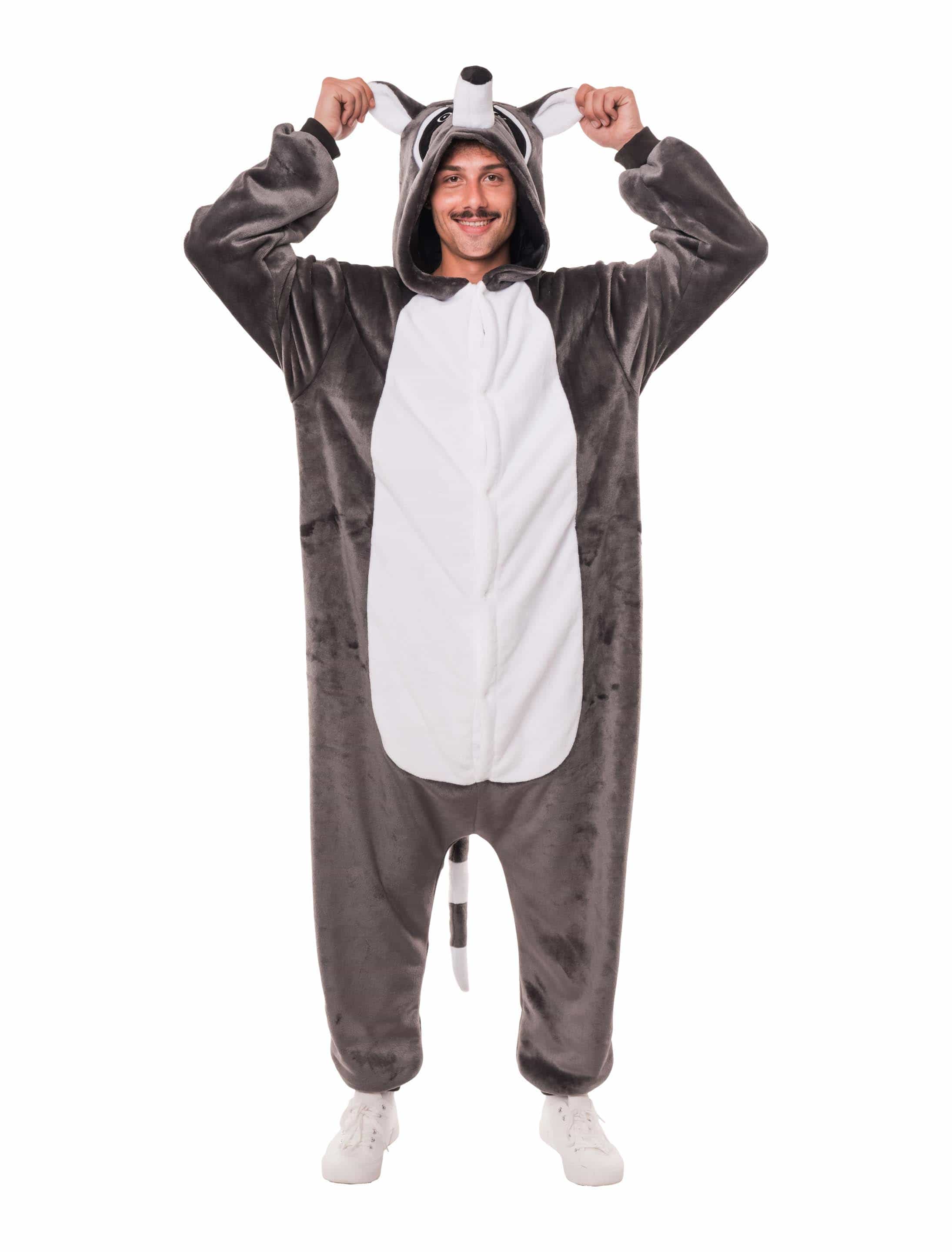 Verwandle dich in einen flauschigen Waschbären mit unserem kuscheligen Plüsch Overall für Damen! Die Kapuze zeigt das niedliche Gesicht des kleinen Räubers – inklusive Waschbär Maske und Öhrchen. Durch den weichen Stoff und das angenehme Tragegefühl wird der Overall schnell zum Lieblingskostüm. Der Reißverschluss vorne sorgt für einfaches An- und Ausziehen. Perfekt für Karneval, Mottopartys oder gemütliche Kostümabende!