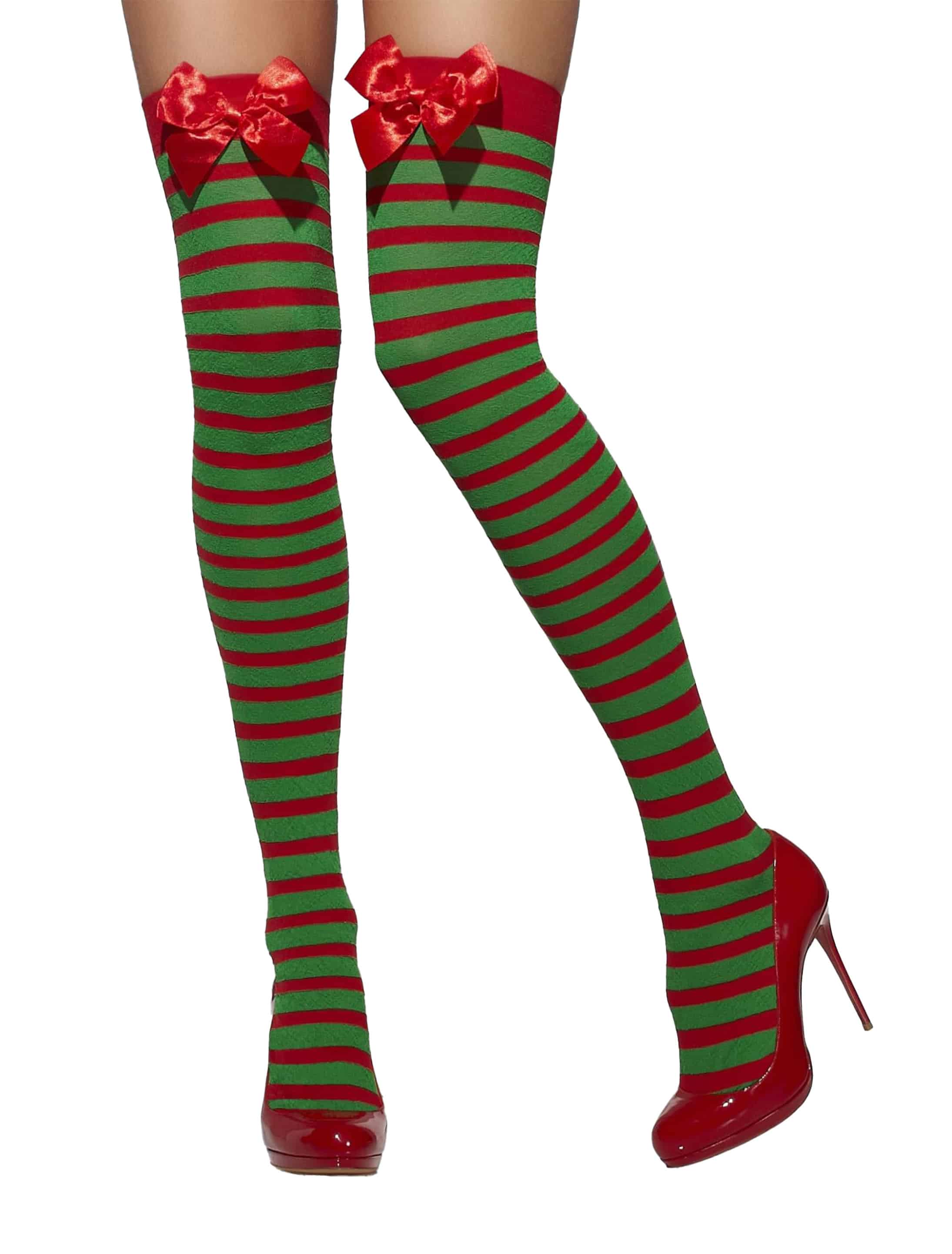 Overknees mit Schleife Gestreift rot/grün one size
