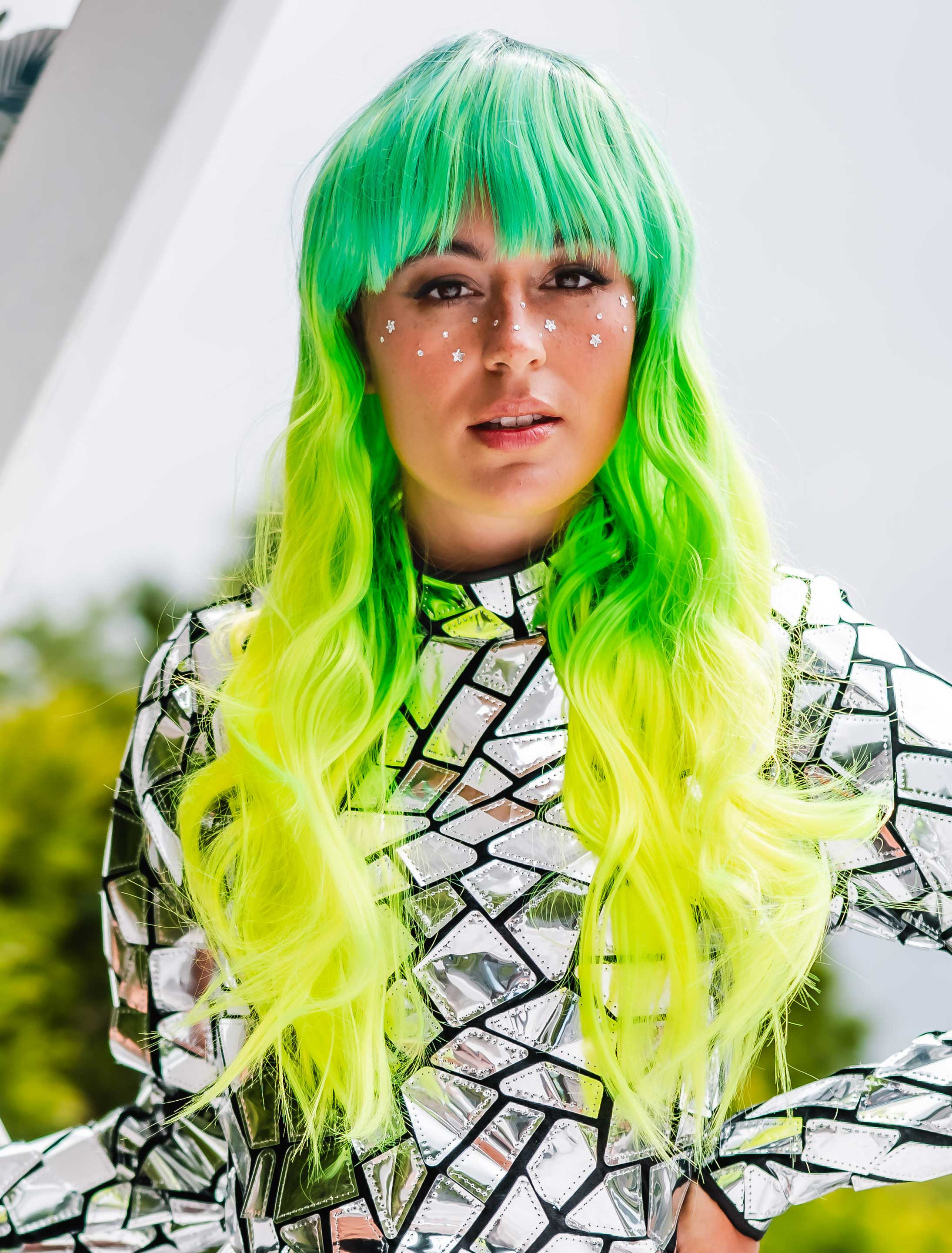 Perücke Langhaar glatt mit Pony neongrün