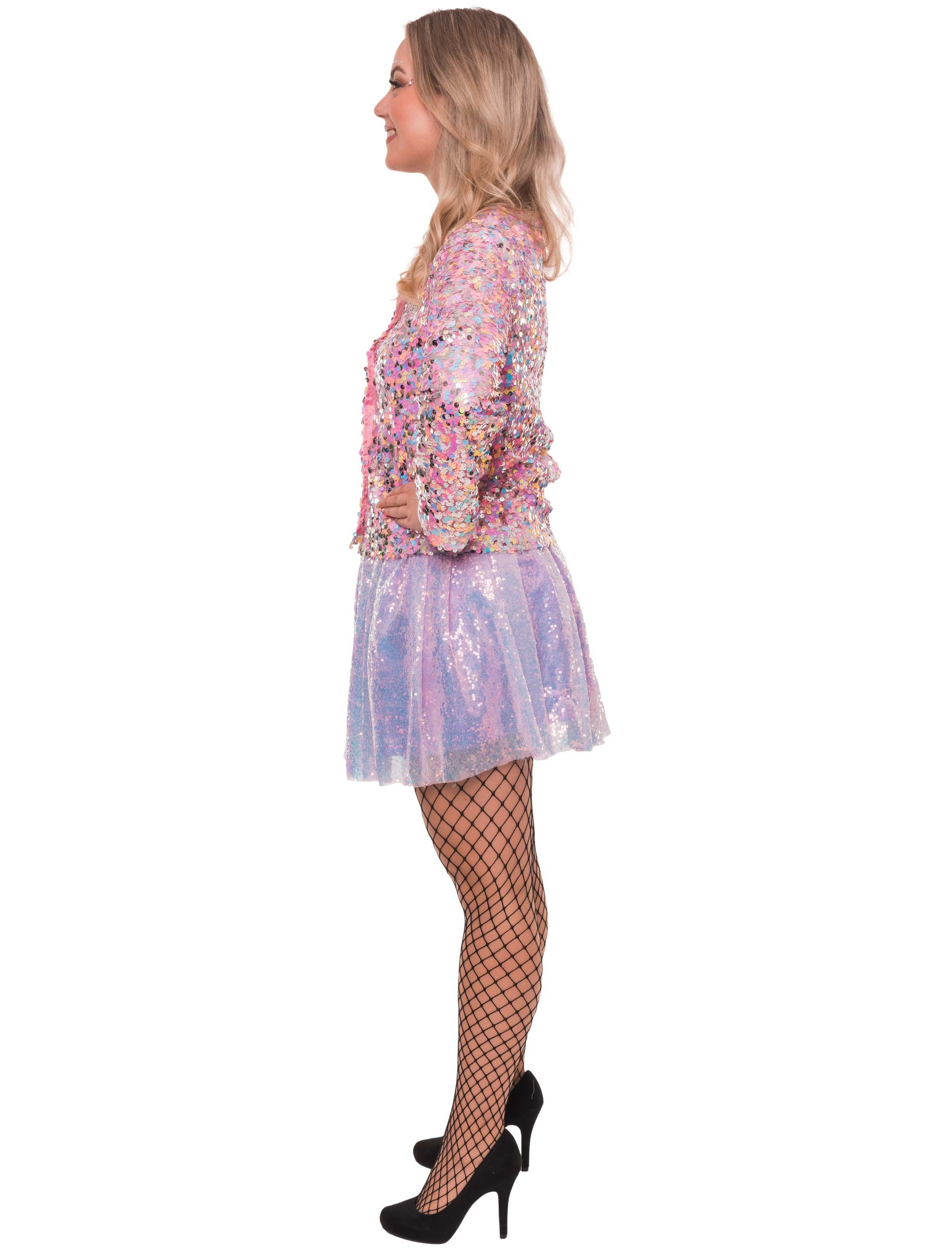 Mit unserem funkelnden Paillettenrock bringst du pure Glitzerstimmung auf jede Party! Die schimmernden Pailletten reflektieren das Licht bei jeder Bewegung und machen dich zum absoluten Highlight auf der Tanzfläche. Egal ob Karneval, Festival, Geburtstagsparty oder eine bunte Mottoparty – dieser Rock sorgt für Glamour und gute Laune. Kombiniert mit einem frechen Top oder ausgefallenen Accessoires rundest du dein Outfit perfekt ab und ziehst garantiert alle Blicke auf dich.