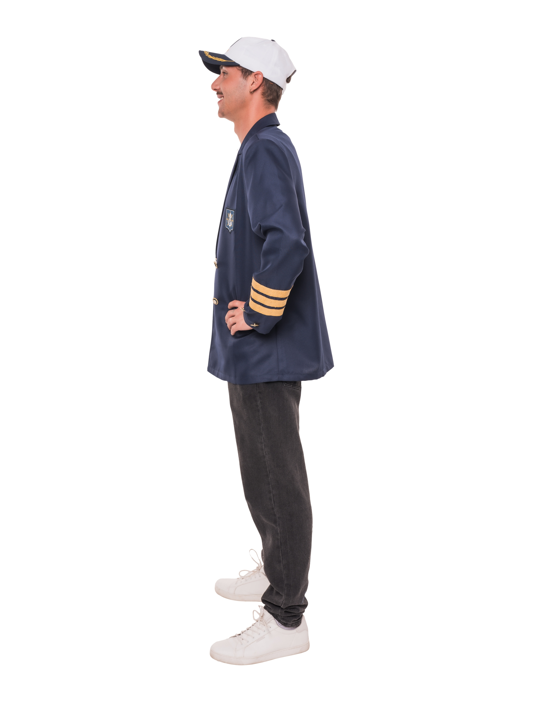 Mit unserem Kapitäns Sakko für Herren bringst du maritimen Charme und jede Menge Seemannsflair in jede Veranstaltung! Das Sakko ist ein echter Blickfang und verbindet klassisches Marine-Design mit schmuckvollen Details. Vorne lässt sich das Sakko bequem durch zwei dekorative Knöpfe schließen, die thematisch perfekt passen und mit einem Anker-Motiv verziert sind. Auf der linken Brust prangt ein Patch mit Anker und Steuerrad, der dem Sakko eine authentische Kapitäns-Note verleiht. Zwei angedeutete Taschen sorgen für den typischen Sakko-Look, während sich die dekorativen Knöpfe auch auf den Ärmeln wiederfinden und das maritime Design harmonisch abrunden. Ob beim Karneval, auf Motto-Partys oder bei maritimen Events – mit diesem Sakko bist bestens ausgestattet. Ein Muss für alle, die mit Humor, Stil und einer Portion Seefahrer-Spirit auftreten wollen!