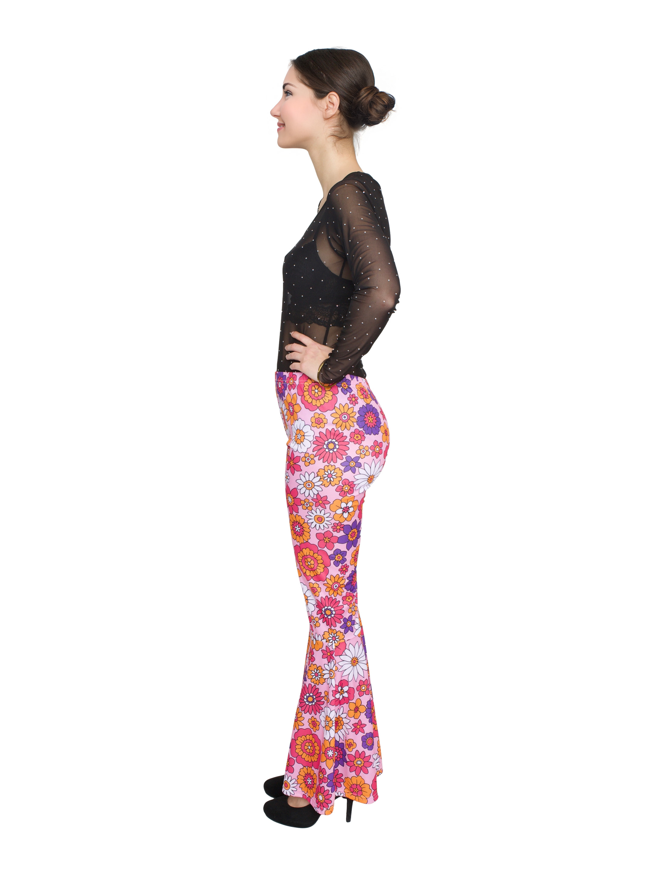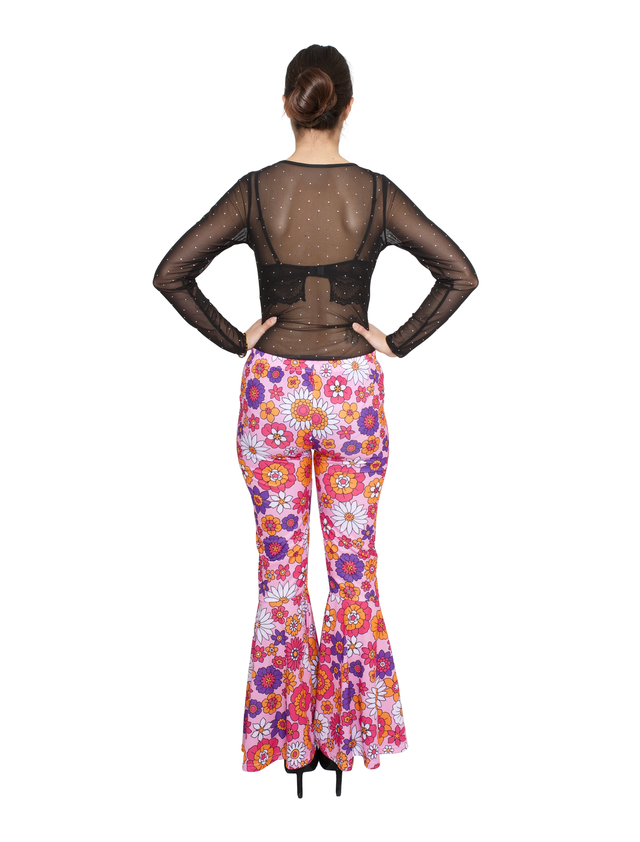 Mit unserer Schlaghose mit Blumenmuster für Damen bringst du Farbe, gute Laune und ein kleines Stück 70er Jahre zurück auf die Tanzfläche! Der elastische Bund sorgt für einen bequemen Sitz und volle Bewegungsfreiheit – ob beim Feiern, Tanzen oder ganz lässig im Alltag. Das farbenfrohe Blumenmuster verteilt sich über die ganze Hose und zeigt Blüten in verschiedensten Formen, Größen und Farben – ein echtes Statement für alle, die es bunt mögen. Dank des typischen Schlags am Bein kommt der Retro-Charme voll zur Geltung – ideal für Motto-Partys, Karneval oder dein nächstes Hippie-Outfit. Ein Must-have für alle, die ihre Beine in Blüten hüllen wollen – bequem, auffällig und herrlich unübersehbar!