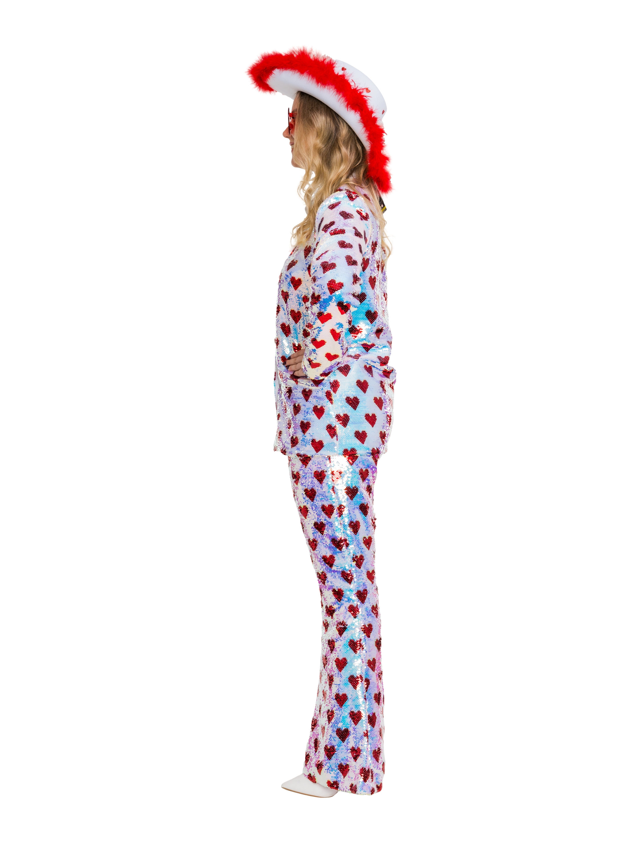 Schlaghose Herzen mit Wendepailletten Damen weiß/rot S/M