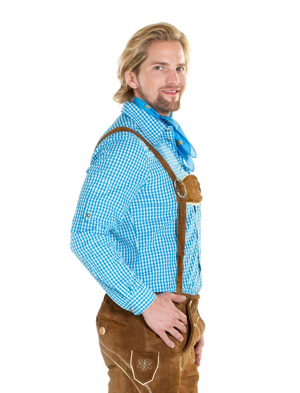 Dieses Trachtenhemd für echte bayerische Buben passt perfekt zu Deiner Lederhose! Das Hemd in blau-weißem Karomuster verleiht Dir traditionelle Eleganz auf dem Volksfest oder an Karneval! Das Hemd ist locker luftig geschnitten und wird über eine echte schwarze Hornknopfleiste verschlossen und geöffnet. Eine praktische Brusttasche auf der linken Brust, sowie Manschettenknöpfe an beiden Ärmelenden verzieren das Tirolerhemd. Die Ärmel lassen sich einfach und praktisch über Knöpfe und Riegel hochkrempeln und geben deinem Outfit einen maskulinen bayerischen Touch. Das Hemd ist der ideale Begleiter auf dem Trachtenfest und macht Dich zum original bayerischen Buben! Die Tiroler Mädels werden Dich lieben!