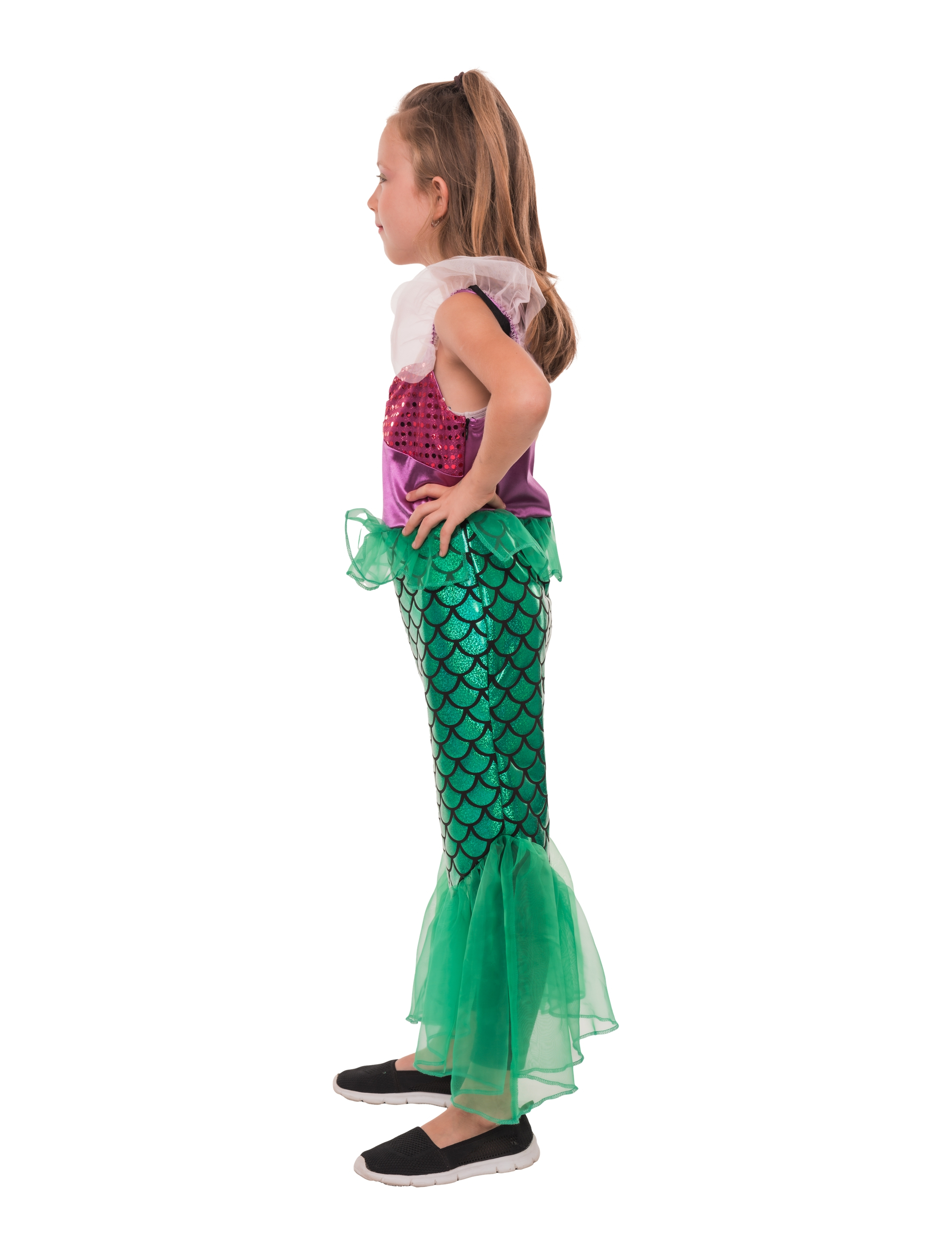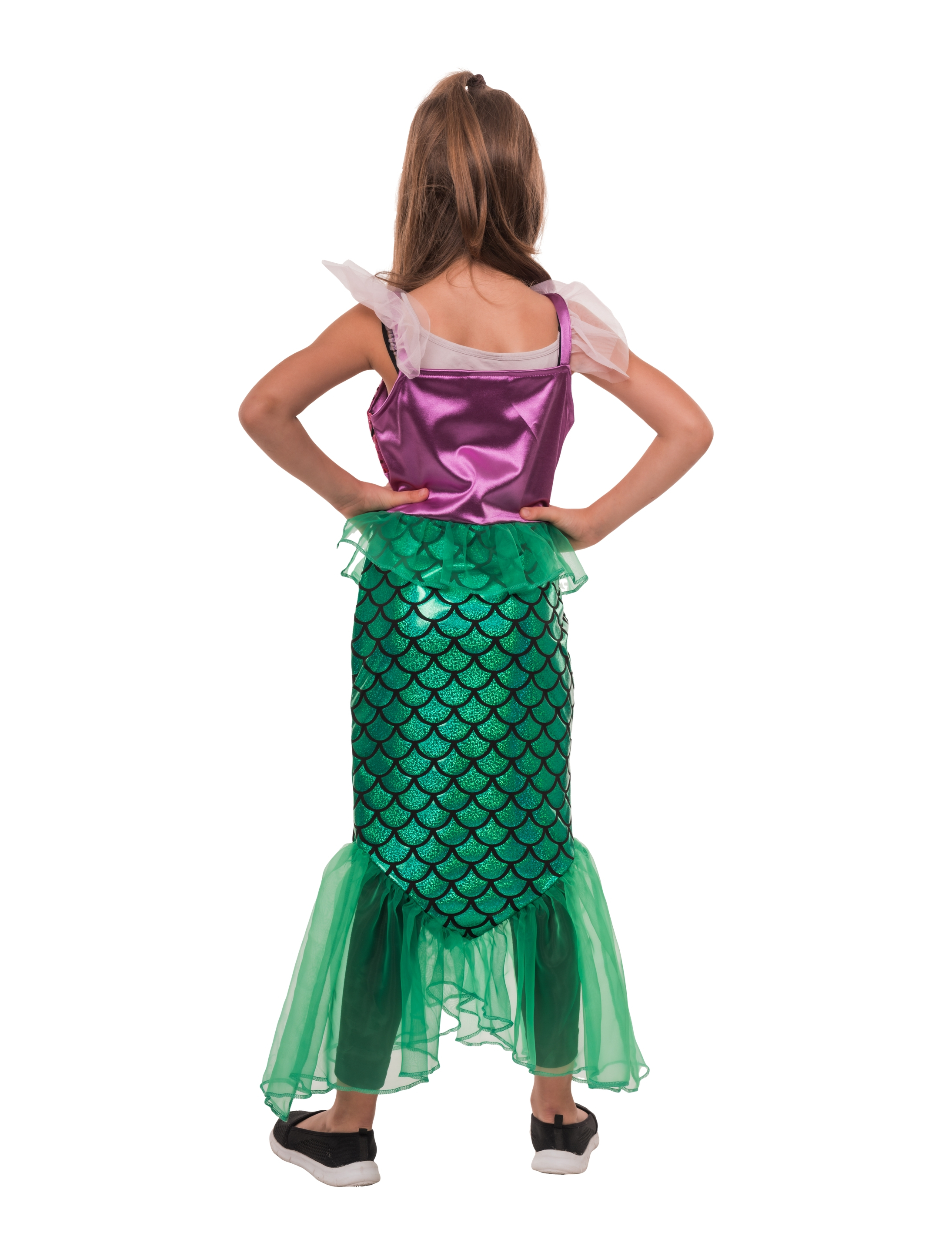 Mit unserem Trägerkleid Meerjungfrau für Kinder wird jeder Karneval zur Unterwasser-Party! Das Kleid ist an Schultern, Hüfte und Saum mit zartem Tüll verziert und schimmert bei jeder Bewegung. An der Seite sorgt ein Reißverschluss für bequemes An- und Ausziehen. Das Oberteil begeistert mit funkelnden Glitzer-Applikationen, während der Rock in Form einer Meerjungfrauenflosse gestaltet ist – perfekt für kleine Meeresprinzessinnen. Für alle, die im Kostüm gern abtauchen und mit Stil wieder auftauchen!