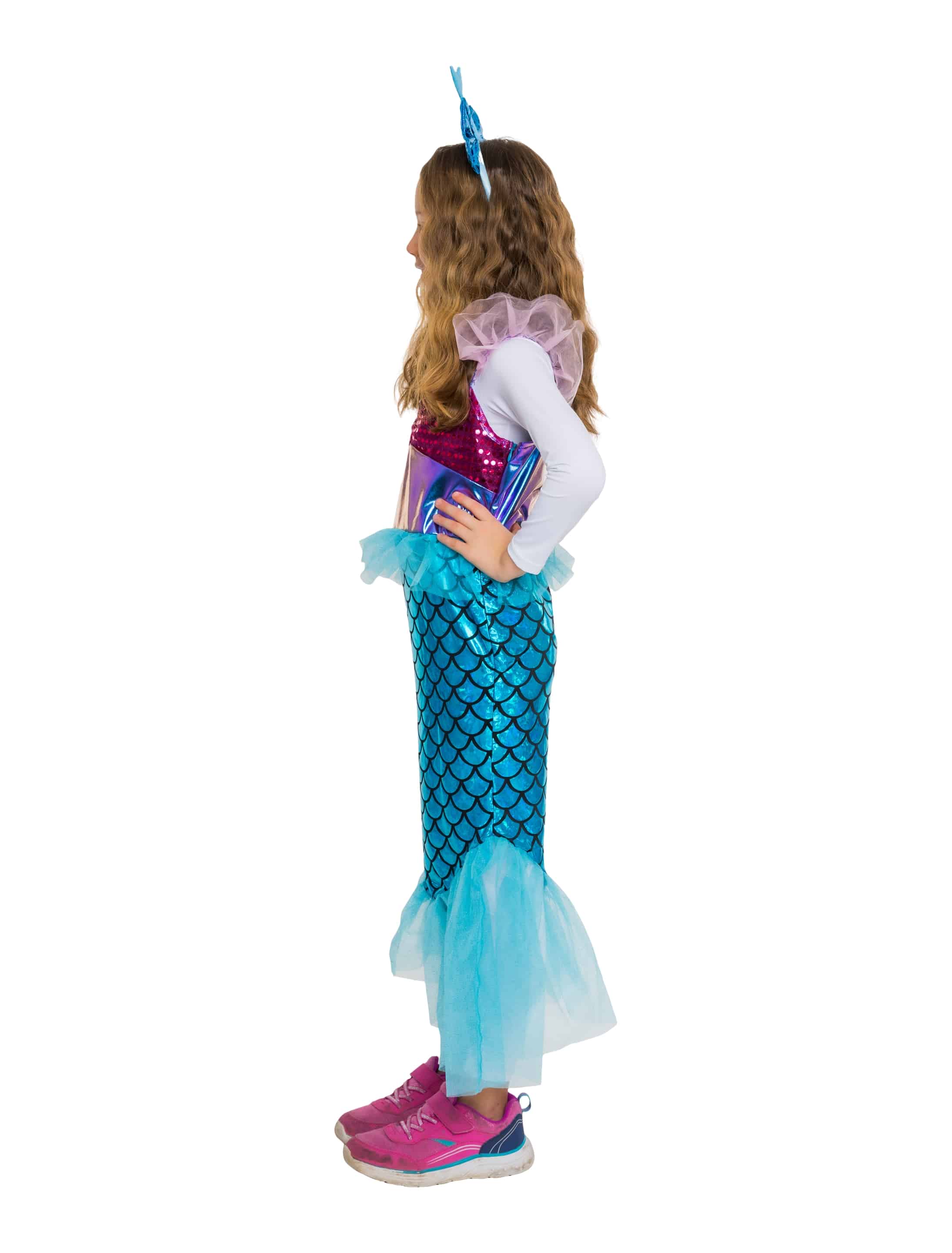 Mit unserem Trägerkleid Meerjungfrau für Kinder wird jeder Karneval zur Unterwasser-Party! Das Kleid ist an Schultern, Hüfte und Saum mit zartem Tüll verziert und schimmert bei jeder Bewegung. An der Seite sorgt ein Reißverschluss für bequemes An- und Ausziehen. Das Oberteil begeistert mit funkelnden Glitzer-Applikationen, während der Rock in Form einer Meerjungfrauenflosse gestaltet ist – perfekt für kleine Meeresprinzessinnen. Für alle, die im Kostüm gern abtauchen und mit Stil wieder auftauchen!