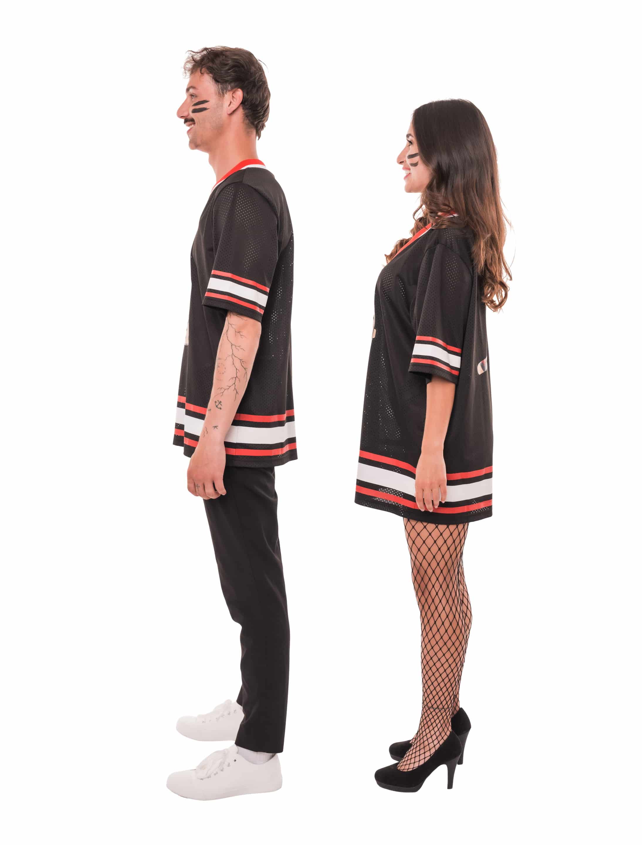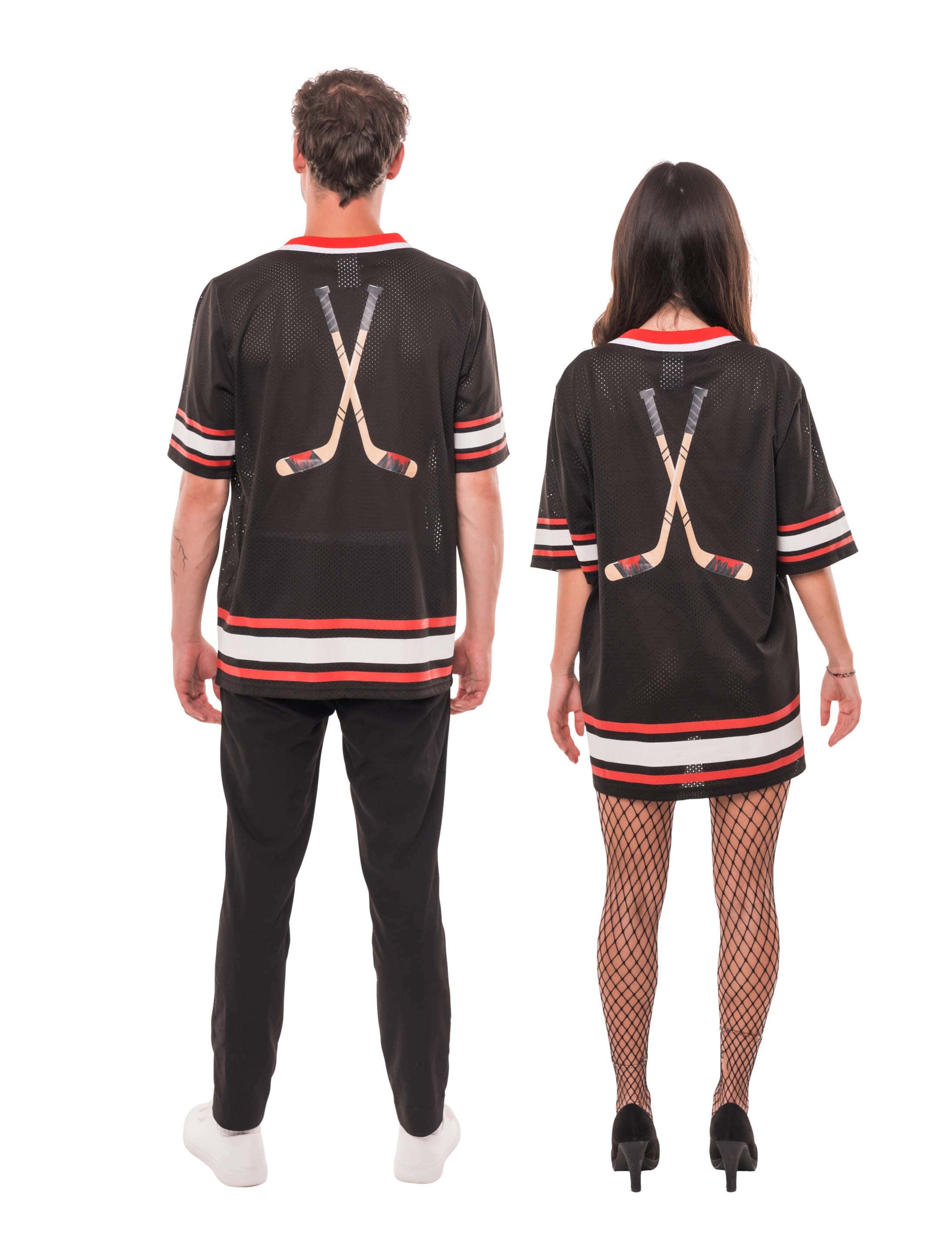 Unser Trikot Eishockey blutig für Erwachsene ist nichts für schwache Nerven – das perfekte Outfit für alle Horror- und Halloween-Fans! Auf der Vorderseite prangt eine blutige Eishockeymaske, die unübersehbar an Jason erinnert. Die Rückseite zeigt blutverschmierte Eishockeyschläger, die dem Look den letzten gruseligen Schliff verleihen. Ob für Halloween-Partys, Horrormottos oder Karneval – mit diesem Trikot wirst du garantiert zum schaurig-coolen Blickfang auf dem Eis oder der Tanzfläche!
